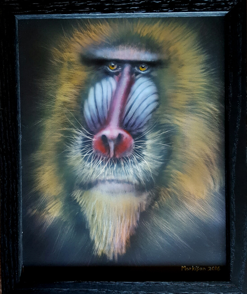 An SF zookeeper friend commissioned a portrait of this expressive mandrill.