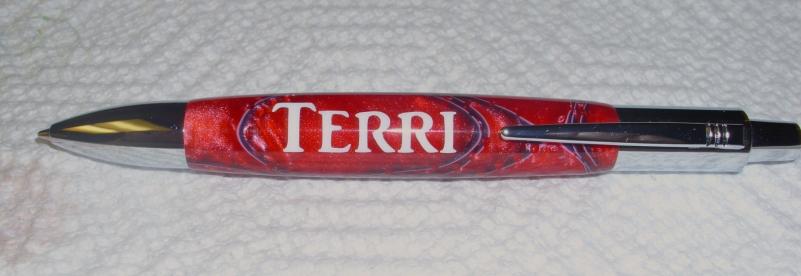 I made this from a CSUSA kit with a blank from Woodcraft. I have been toying with an idea ever since I started turning pens. I have wondered if anyone uses a craft cutter to personalize or add some type of embelishment to their pens. I finally broke down and bought one. The name on this pen was cut from adhesive vinyl. The same type used by sign makers, crafters, hobbyists, etc. After finishing the blank, I applied the vinyl, then added 8 coats of medium CA. Sanded and polished. I have also been working on applying the vinyl right to the painted tubes, then casting in PR. So far the results look real promising.