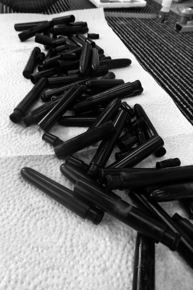 This week I had to make some ebonite pen blanks for urushi lacquering. I assume many of you know that its a dirty and dusty business.I thought I might post some pictures.