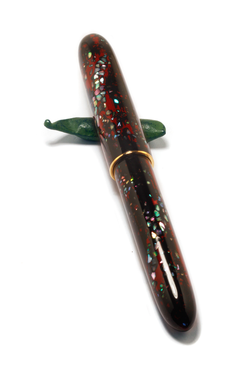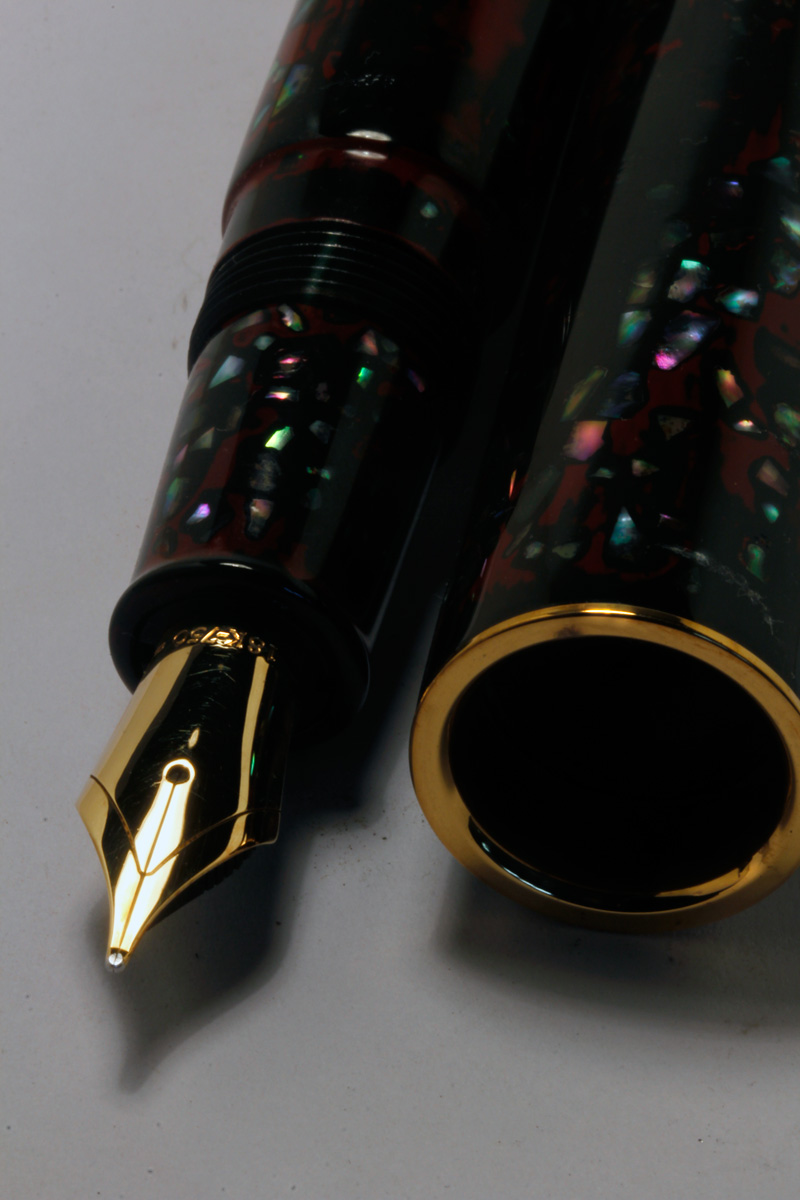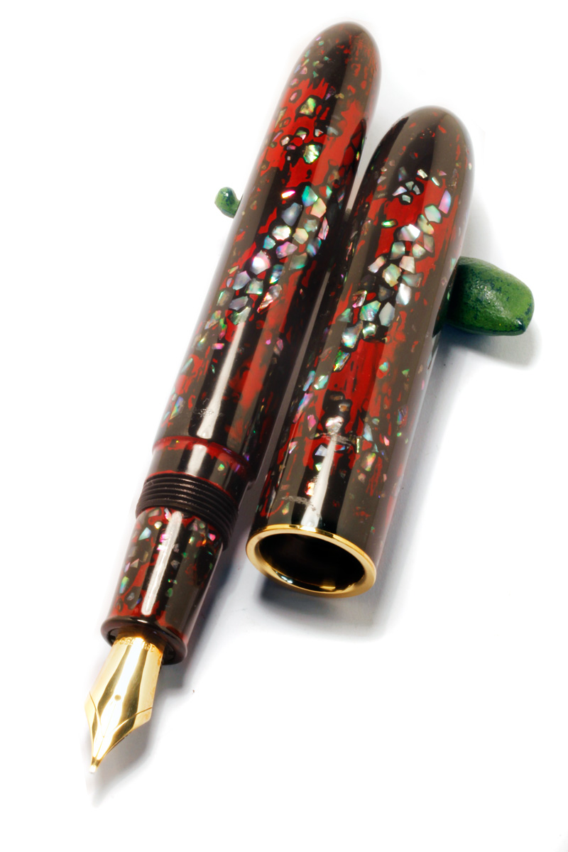 A rather large Ebonite pen in the size of a Namiki Yukari with "Raden Negoro" Urushi Lacqquer, #8 gold nib, custom made for a Collector.