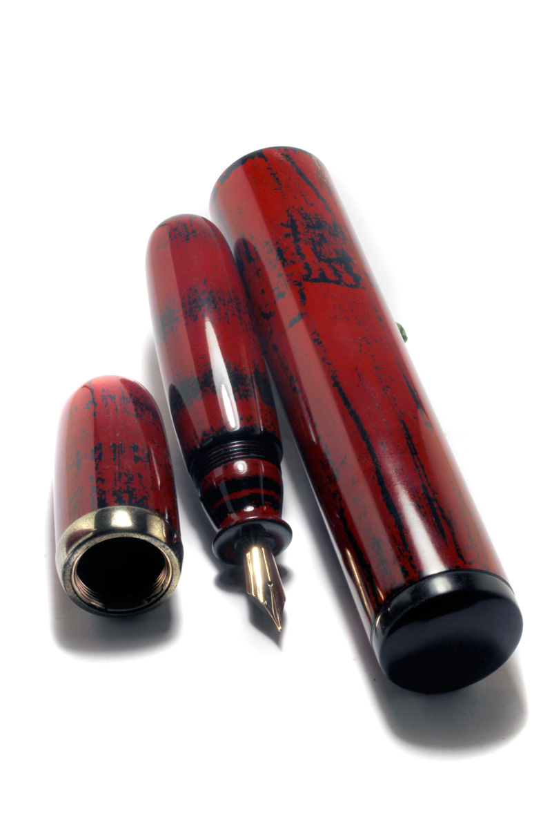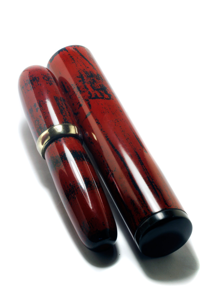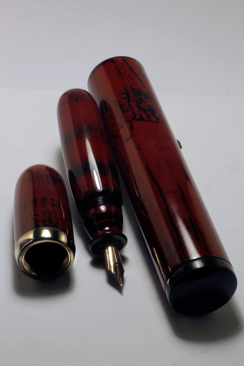 A set of a "fat" Jumbo Pen and its case with "Negoro-Nuri" Urushi Lacquer.