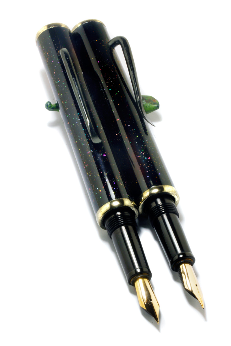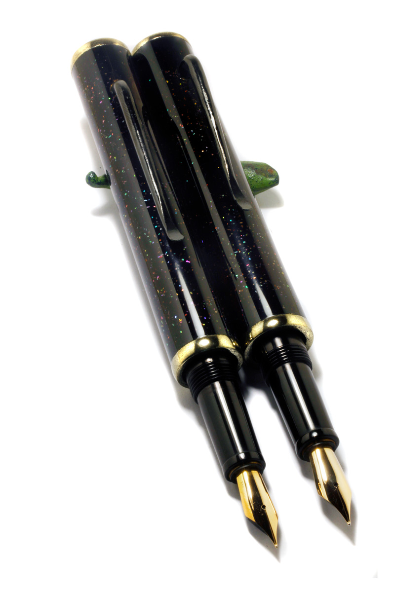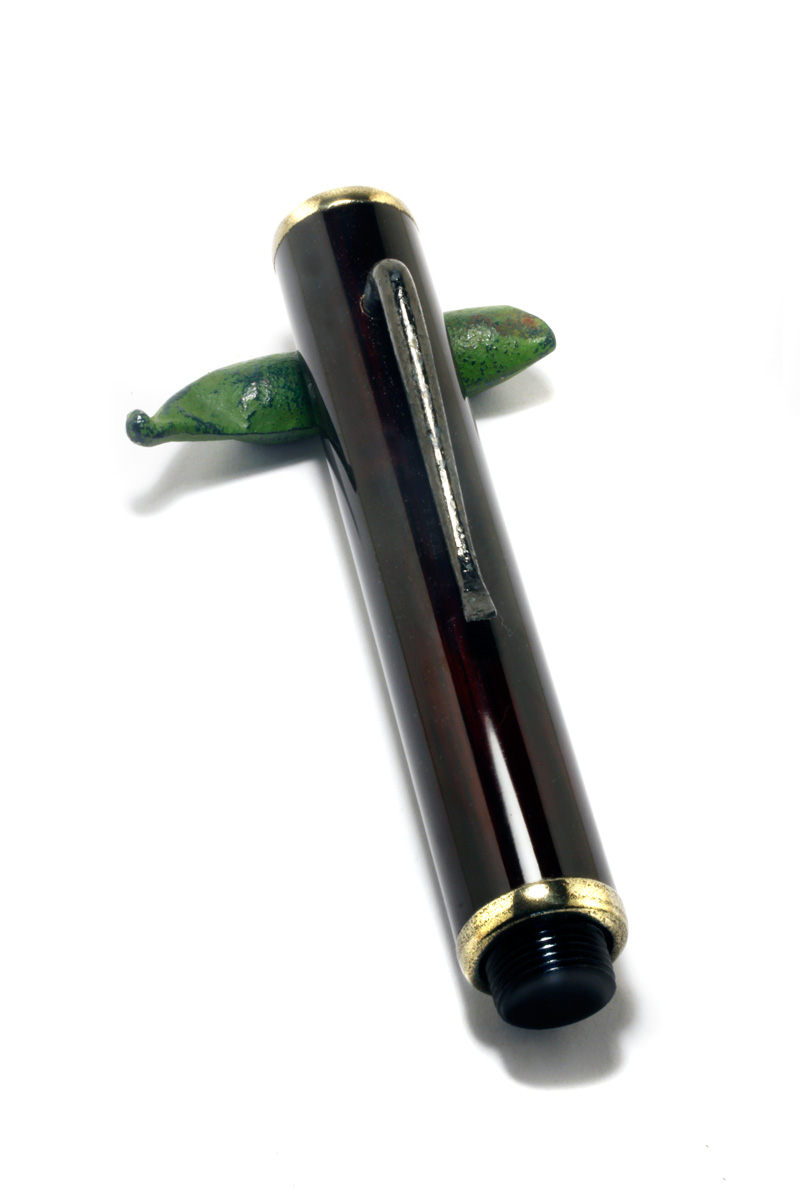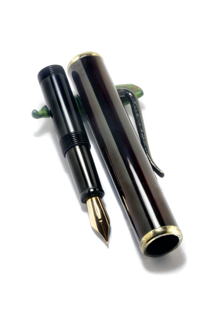 A Bamboo Pen made from turned Bamboo material, rings and end pieces "Kinsokumitateai" made from urushi and brass powder to look like solid brass fittings. The section Japanese black-brownish Ebonite, #6 gold nib.