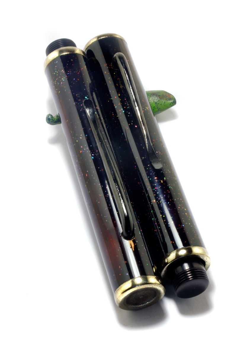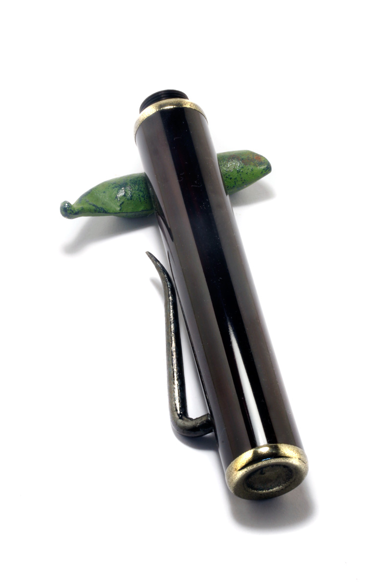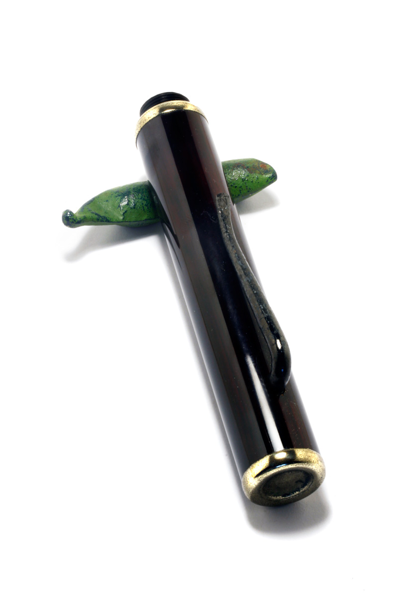 The bamboo Barrel/Cap lacquered with transparent "Sukurome" Urushi lacquer. The large Clip forged from a large iron nail "Tetsukugi", treated with "Yakitsuke" ki-urushi is burned into the iron surface over a charcoal fire. The weight just 50 grams.