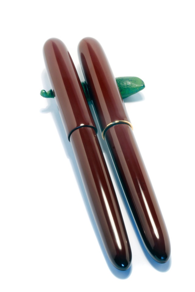 A pair of Shibui and Miyabi Shibui Type Pens with a chocolate brown urushi color. Enjoy Weekend Martin