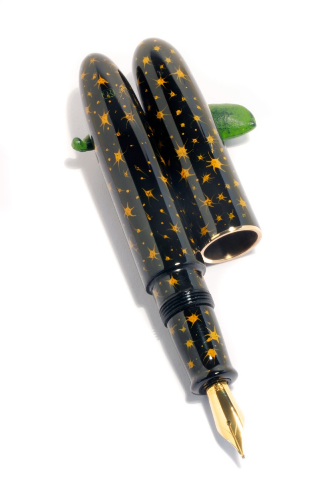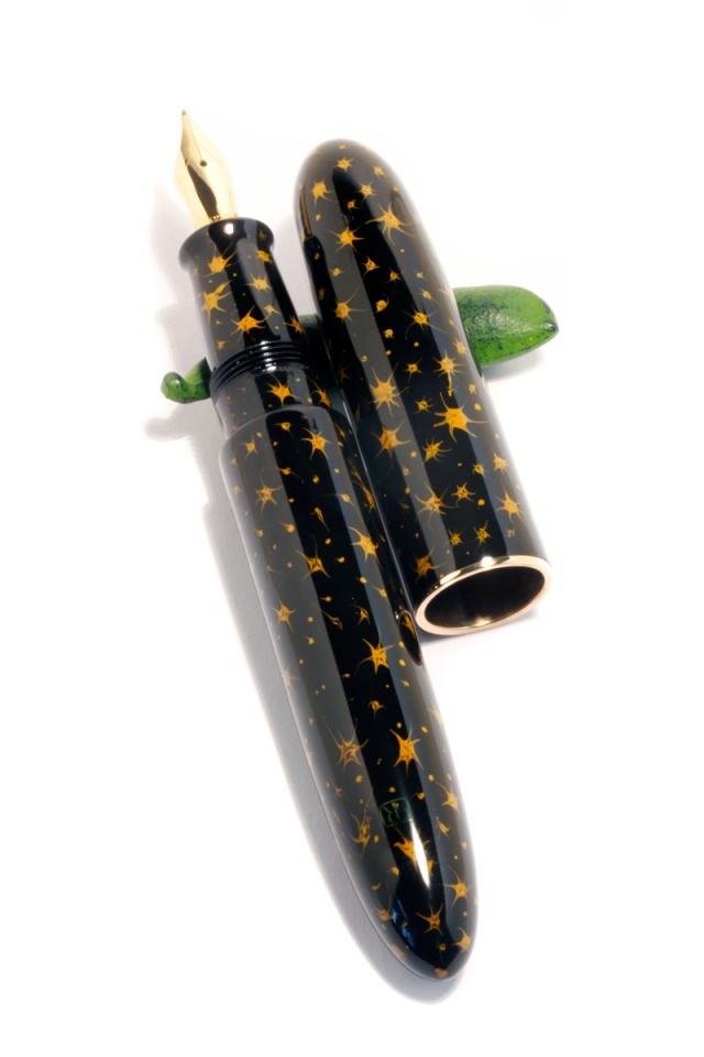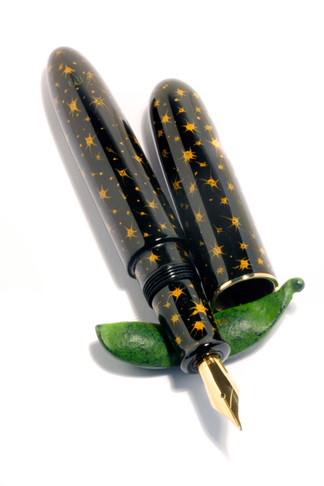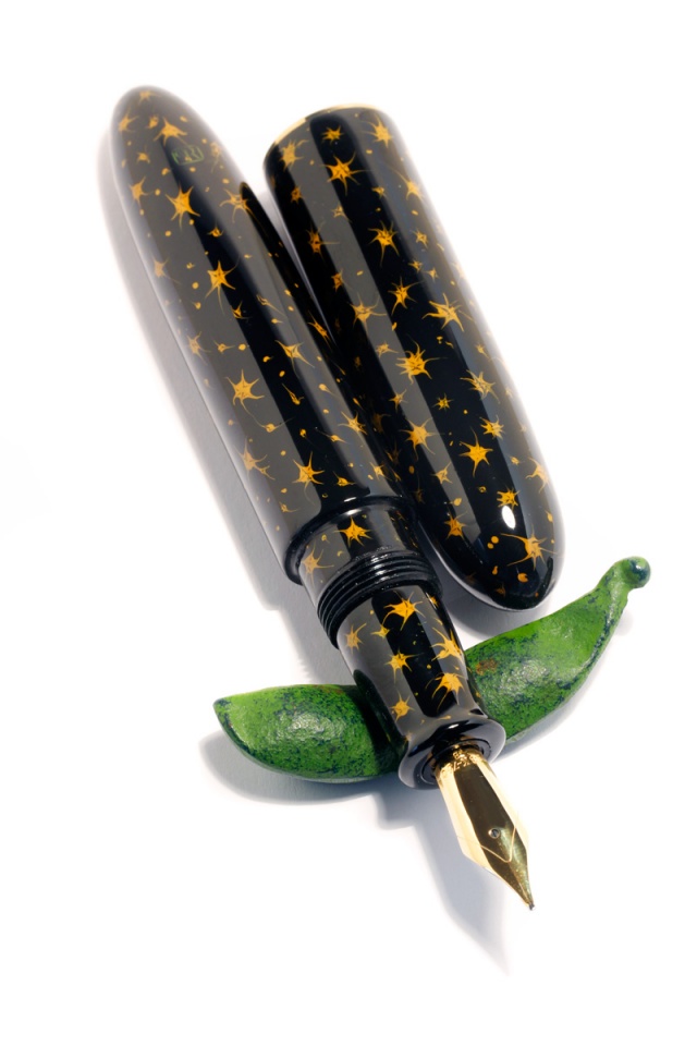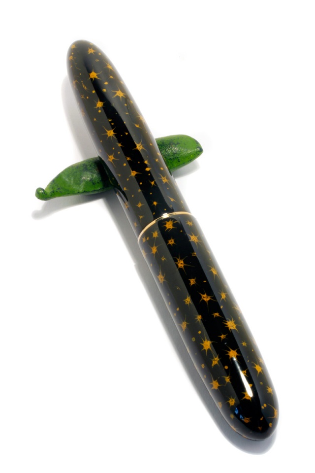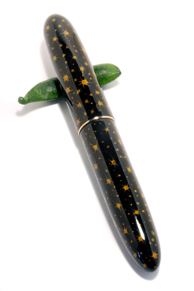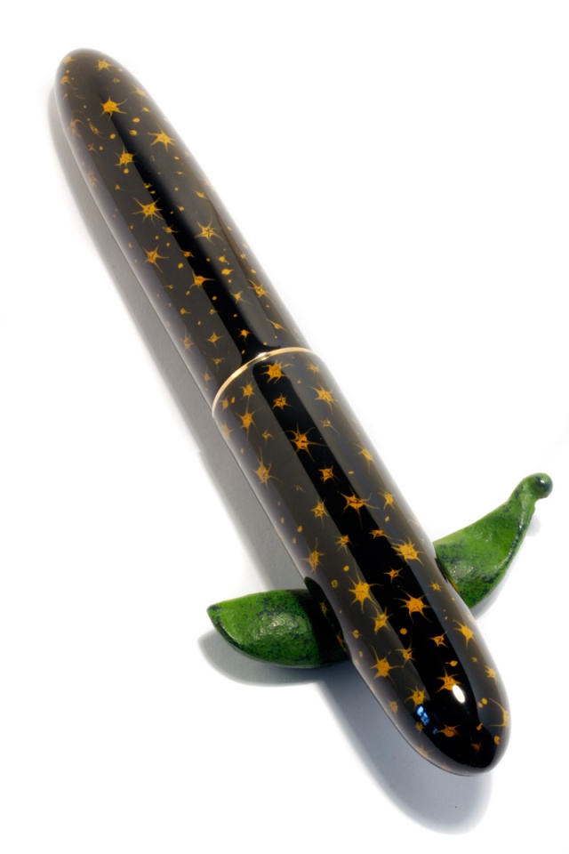 After lunch I gave a new urushi pen the final polish. This urushi I call "Hoshigata-Nuri", star pattern lacquer. It belongs to a group of lacquer I call "Genshô-Nuri" weather pattern lacquer. It is a lacquer I discovered on a Edo-Period Katana-Saya (Sword Scabbard)