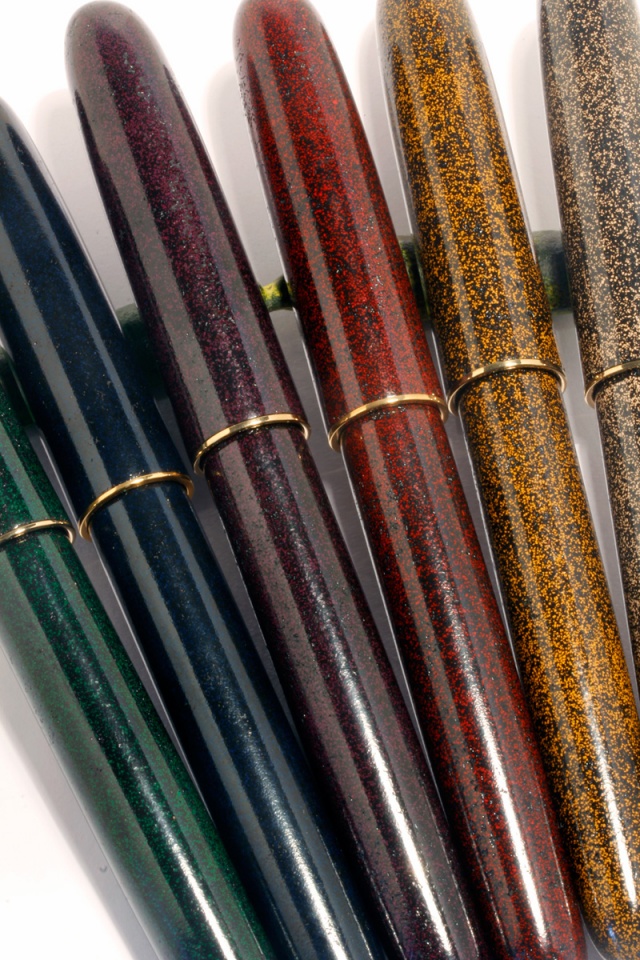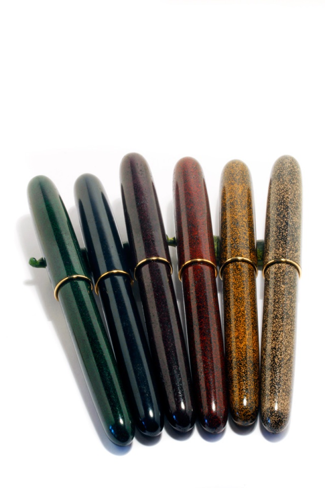 Completed today a collection of "Miyabi Shibui" type pens with 6 different "Iro-Ishi-hada" urushi finish, Midori = green, Ao = blue, Murasaki = purple, Aka = red, Ki = yellow, Shiroi = white (Ivory)