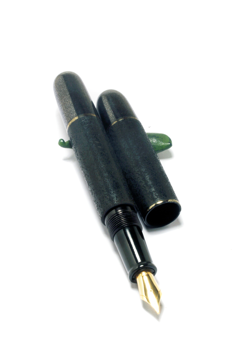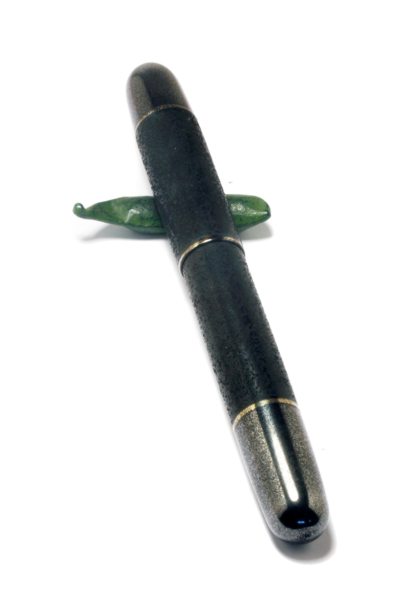 The pen is lacquered with "Kuro Ishemeji Nuri" Black Stone Surface Urushi Lacquer. The ends lacquered with "Tetsusabi" Iron Lacquer. It's a unique piece