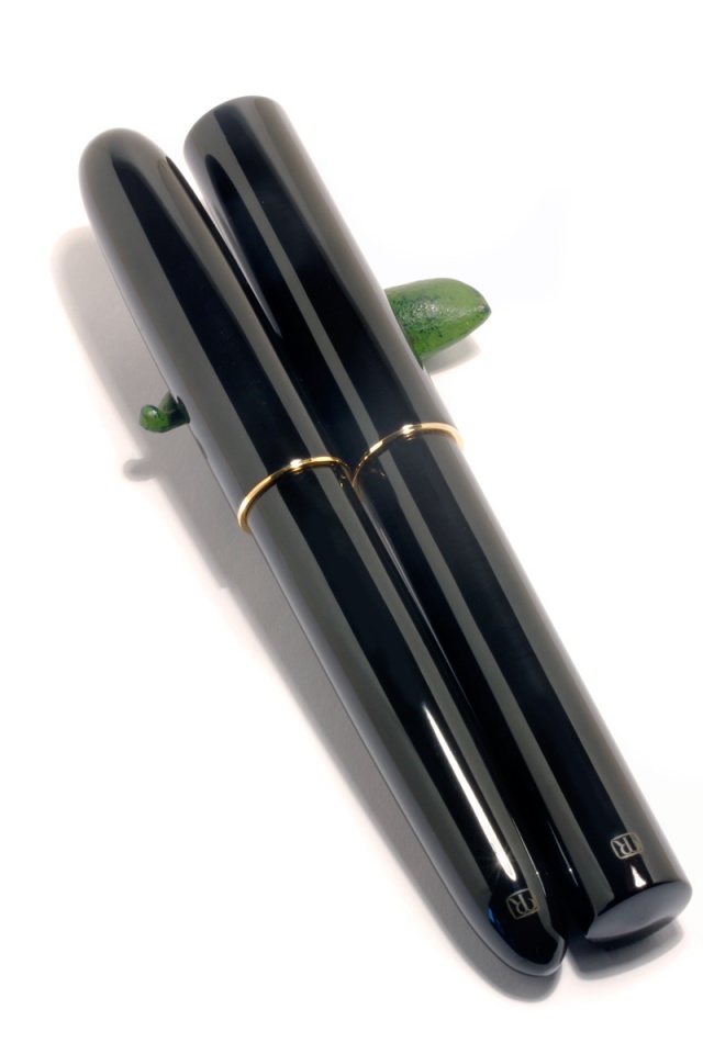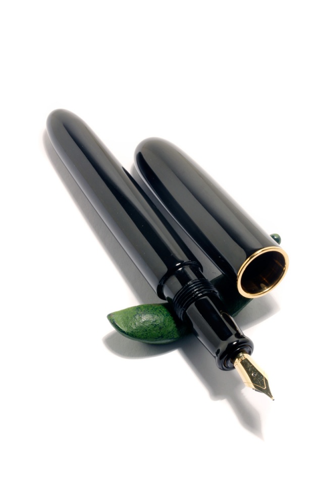 The Ohaguro Pen (ha = Teeth, Guro/kuro = black) was lacquered with urushi mixed with lamp sooth. Lamp sooth or lamp black is also used to make ink.
