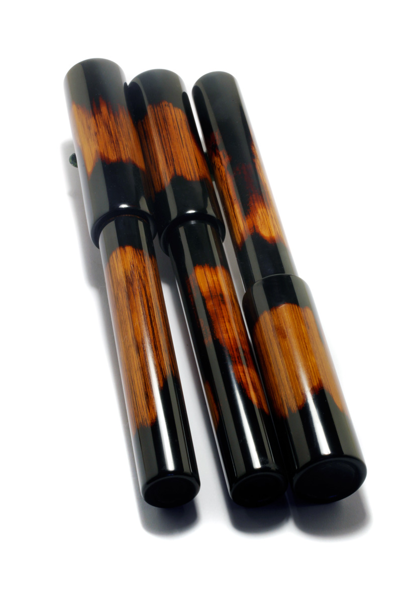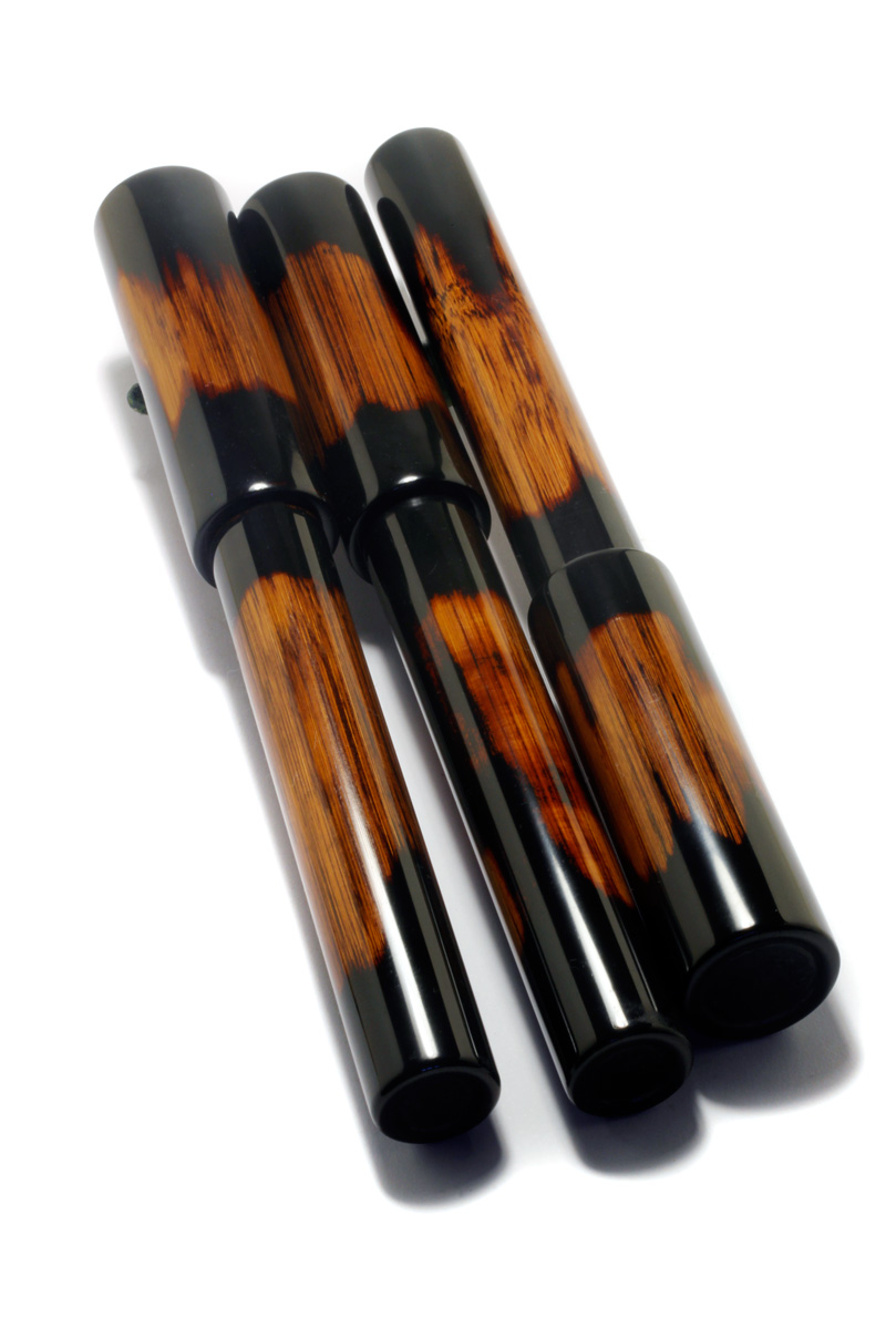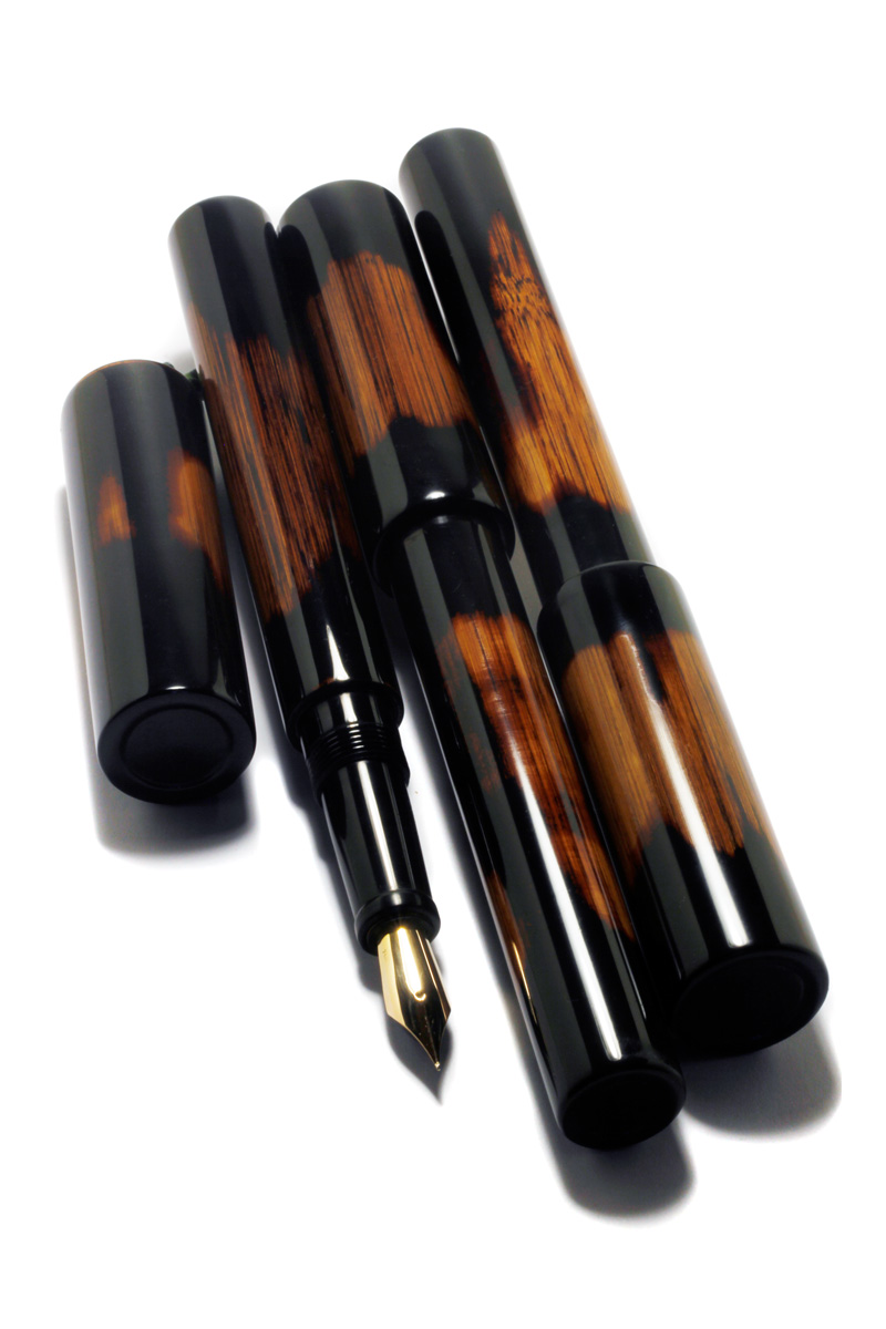 I just finished a couple of Bamboo Pens with a sort of "Negoro Nuri" Urushi Lacquer. Most negoro-nuri consists of coatings of black lacquer covered with coatings of red lacquer or other the way round. After the wear-and-tear of many years of use, the upper lacquer is worn away, exposing the lacquer coating underneath in various places. It represents an aesthetic concept called "Yô no Bi" beauty through use. On those pens there is no colored undercoat but the pure Bamboo visible through the black lacquer. An enchanting combination I find.