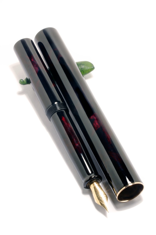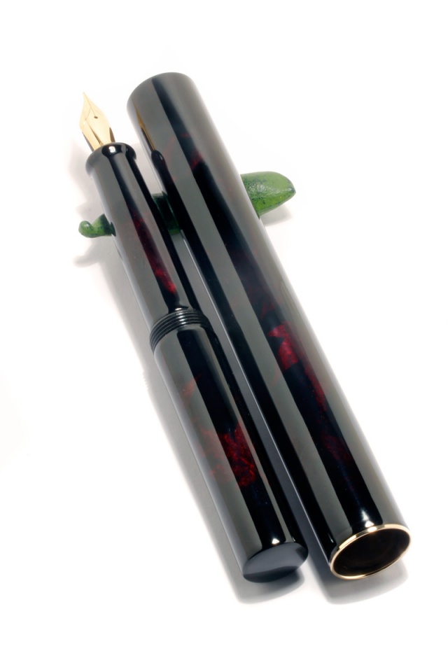 This morning I finished a pen with a new urushi lacquer. I call it "tame-momiji" on a black polished surface I applied momiji (Maple) leafs brushed with strongly pigmented yellow and orange urushi. After hardening, the leaves were removed with water. Then I applied some 15 layers of transparent urushi "tame". Now one can see the leaves shimmering through the "tame" layer. Since Urushi becomes more transparent with the time in maybe a year the leaves with be well visible.