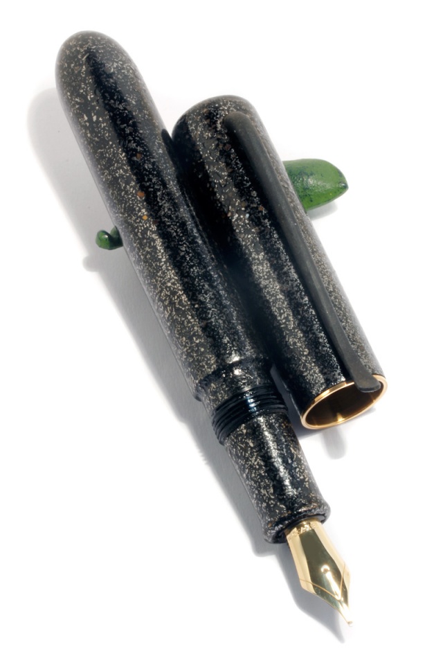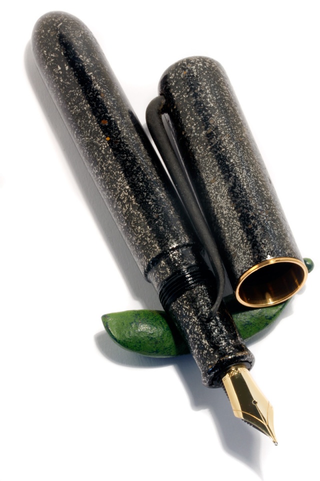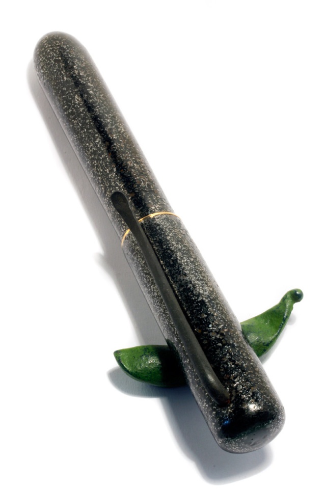 In the last weeks I made some clip experiments, a pen with an archaic clip forged from an iron nail (tetsu-kugi), rusted and sealed. The urushi lacquer was achieved with iron filings sprinkled into wet black urushi lacquer.