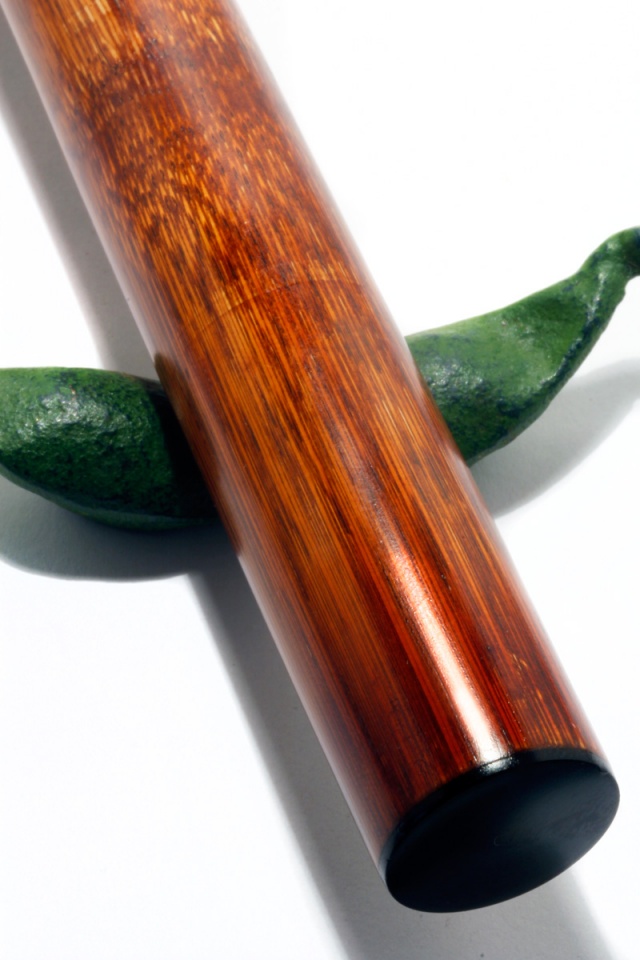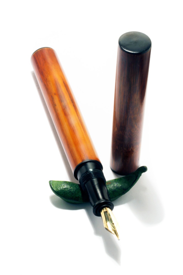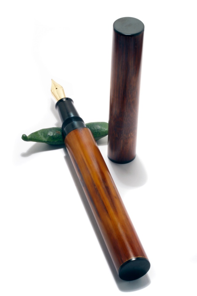 My first bamboo fountain pen. The bamboo was harvested in my parent's garden last year. After turning in shape on the lathe and sanding up to grit 5000 I made 5 times Fuki-urushi, rubbing on and wiping off ki-urushi. The ends of cap and barrel and section is ebonite also finished with fuki-urushi.