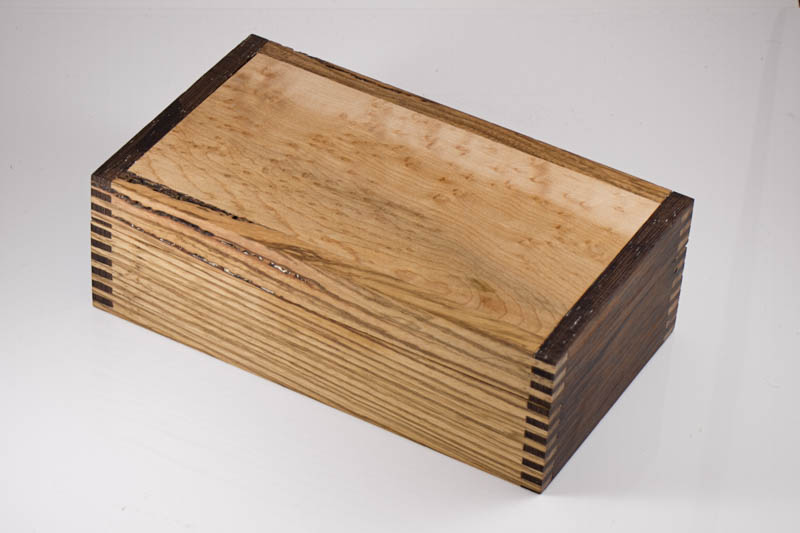 I spent a lot of years in the military, and on one base, we had a really talented guy running the wood shop. He would make a box like that by cutting all of the parts, assembling the box then taking it over to the band saw and cutting it apart where he wanted the top to be. He would even make a serpentine cut to make the box a little fancier.