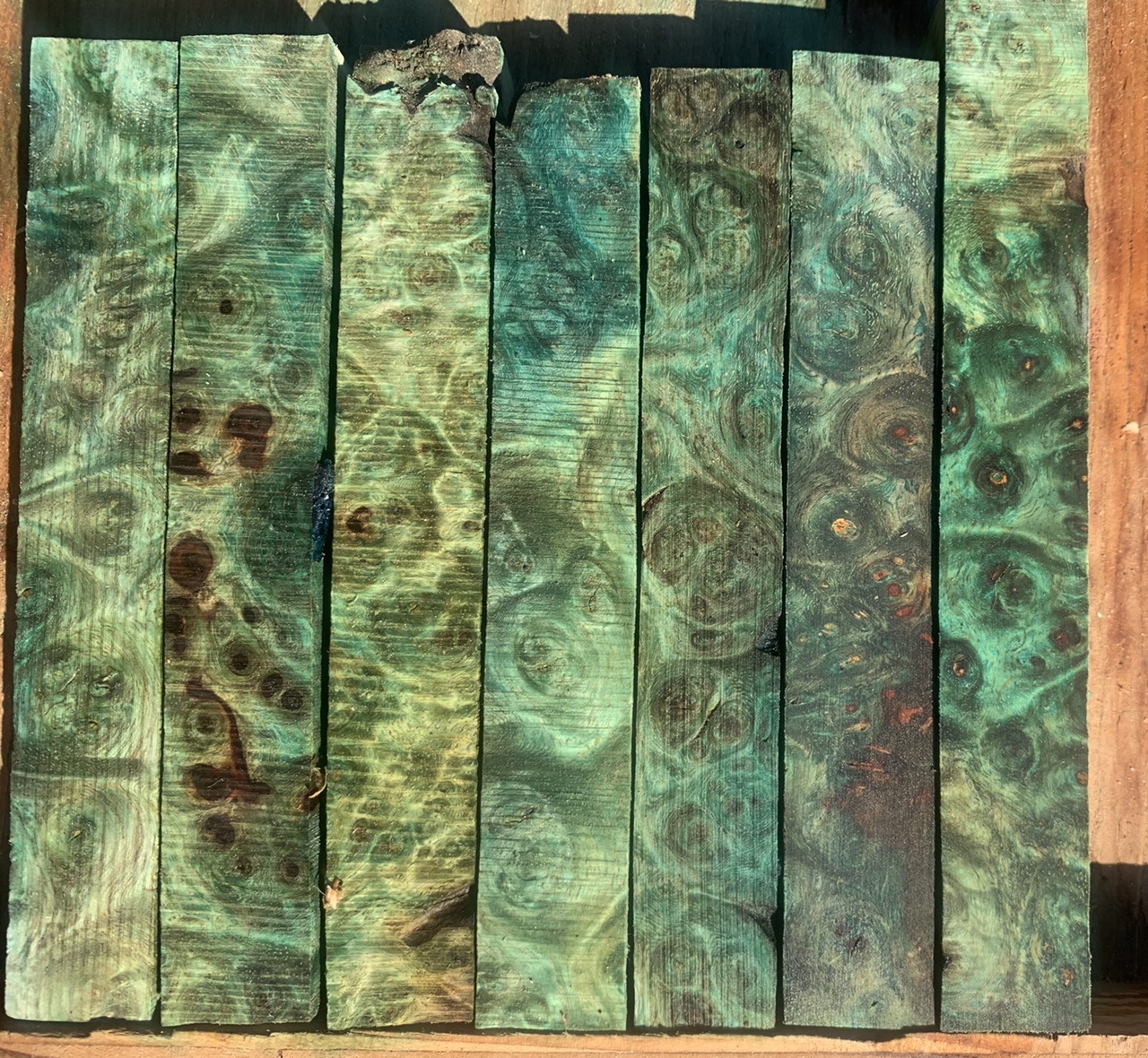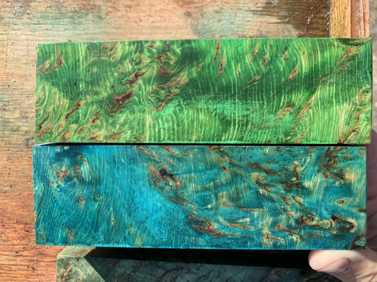Hrb pictures plus I still have a few of dyed stabilized amboyna sapwood blanks too. $7 each.