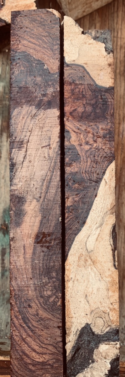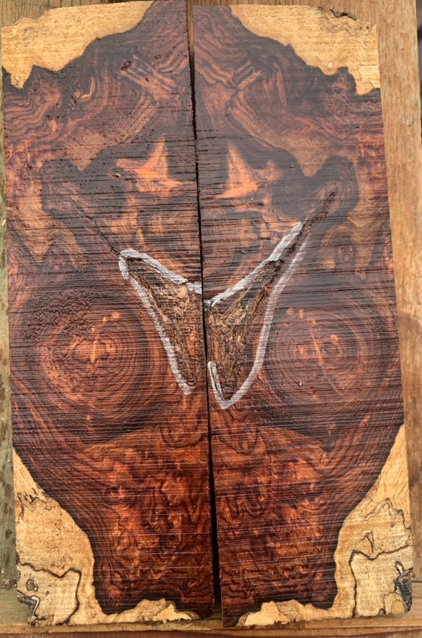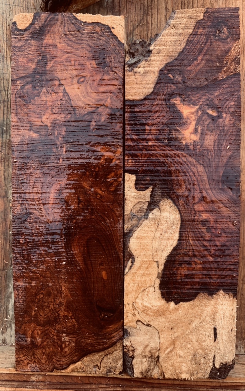Two dry HRB slabs at 7/8 x 2 x 6.5. There is a bark inclusion you can see I outlined in the picture but it can be stabilized with CA or casted. There is some great burl and contrasting sapwood in these pieces. Should get 4 pens out of this $30 plus shipping. List in multiple places.