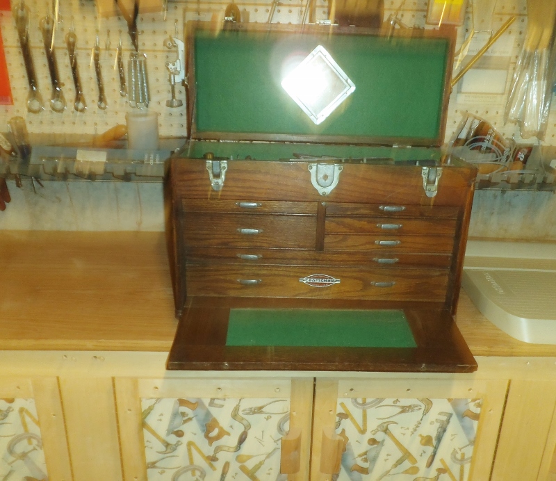 Thank you Derek !! The tool chest sits on one end of my work bench that also holds my mid size lathe. The back is open to the rest of the shop and can be seen by anyone inside, while my chucks and tools are within easy reach of the lathe. I see the one Harbor Freight sells is one sale for $79.99 and can be had for under $60 with the 25% off coupon. You can't buy the wood and hardware for that kind of money, much less take the time to build it. Does anyone know why they have a machinest mirror built into the tops of these small chests ???? Jim S