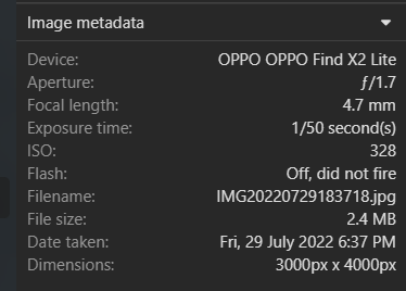 When you click the image, the settings are in the metadata. It doesn't help you with the factors external to the camera, such as lighting, but can still be useful.Excellent pen. Could you share the settings for the photo?