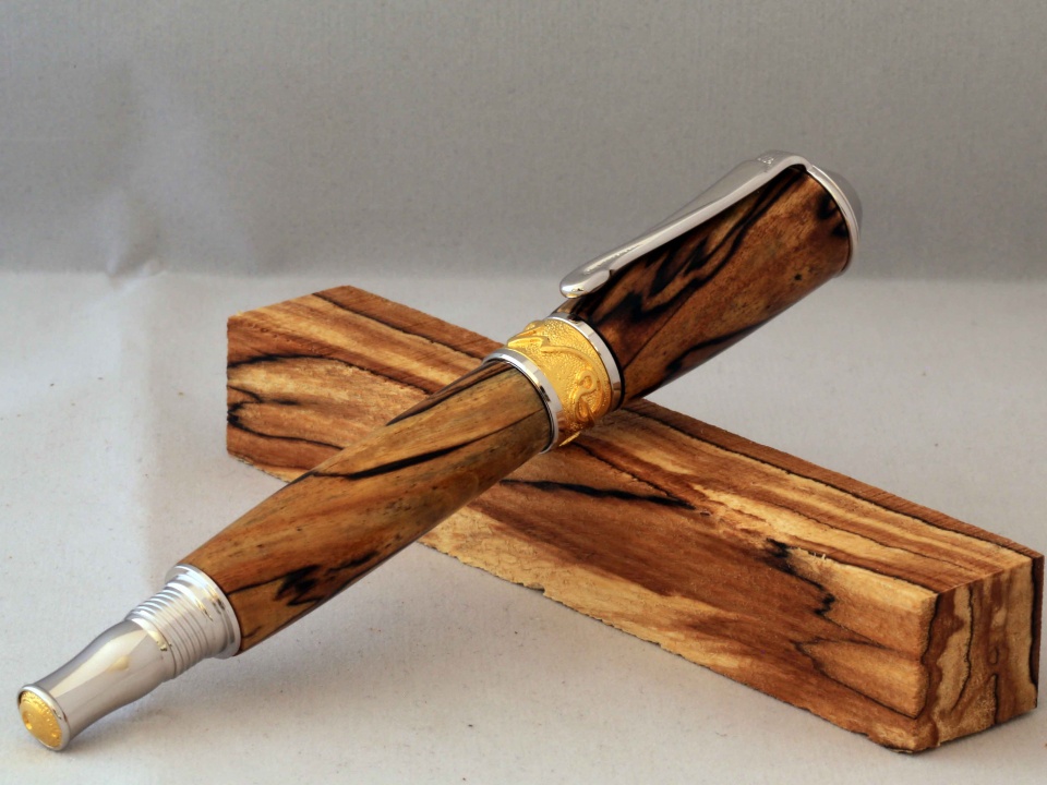 I love this timber, and like the pen a lot. Its easy to work with, comes up to a great finish. Learned an important lesson, that when you are sanding light timbers, get rid of the stainless steel bushings, as the black dust from the bushings can easily stain the wood. So next time I will use plastic bushings before sanding. I got the blanks from Exotic Timbers. It comes with a certificate of authenticity. My registrar who bought the pen, absolutely loved it. I would highly recommend this timber. I have not tried the birch burl. Does anyone from North America know if this is spalting on the timber, or is it the normal grain of the timber?