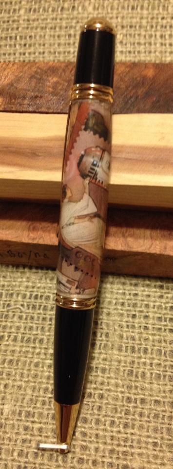 I apologize for taking so long to get the pics posted. I received my pen from Flynny last week. It's an awesome Star Wars stamp themed pen. One of my all time favorites movies. Fit and finish are exceptional. Thank you so much! And thanks for the great selection of blanks. Now I just need to find the time to make use of them :)