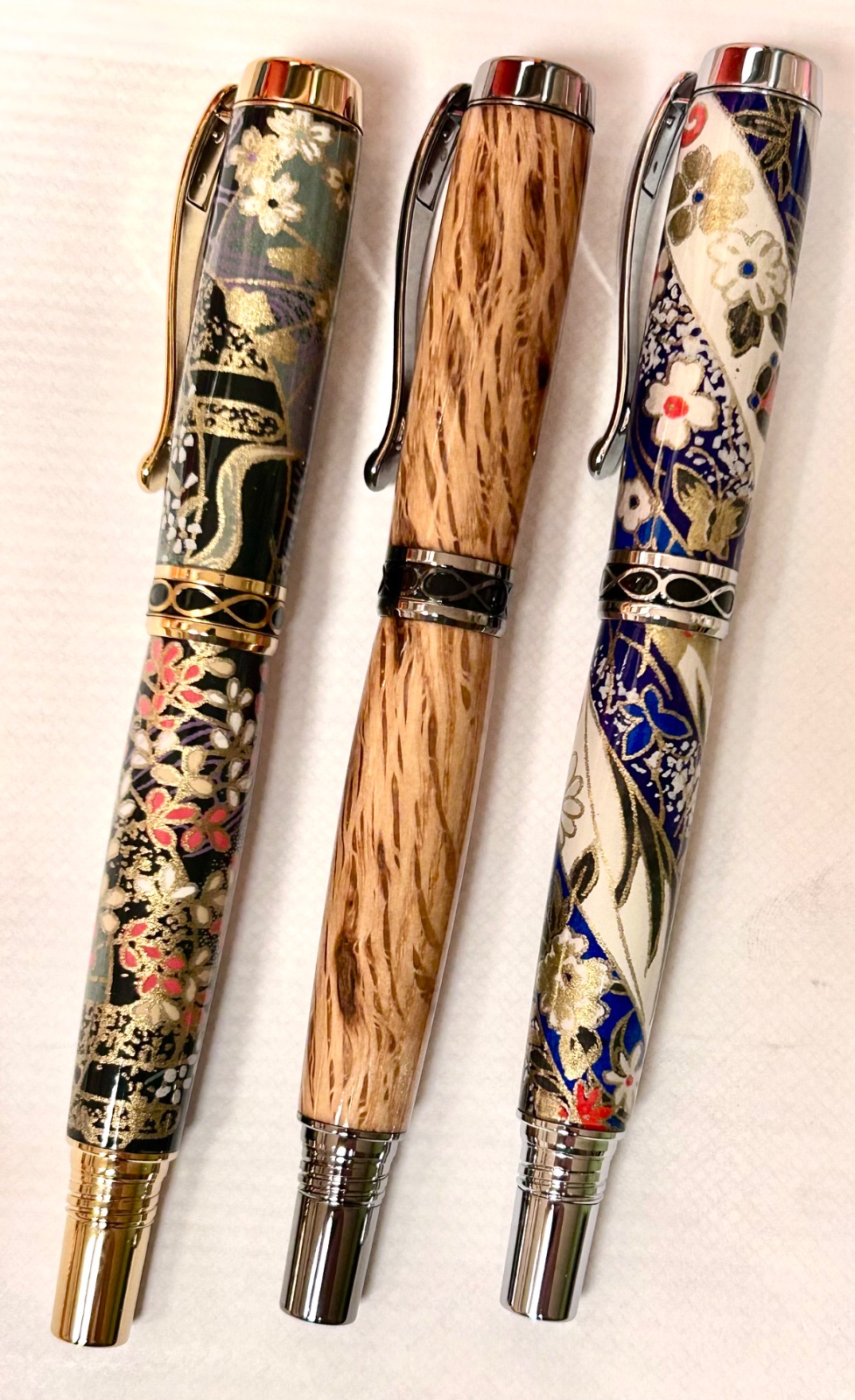 This is what I came up with. The Ti Gold and the Chrome sets are both some of my Washi Blanks (Japanese Paper clear cast) and the Black Ti is dressed with an Oak blank. All three have a Gluboost finish, wet sanded and buffed.