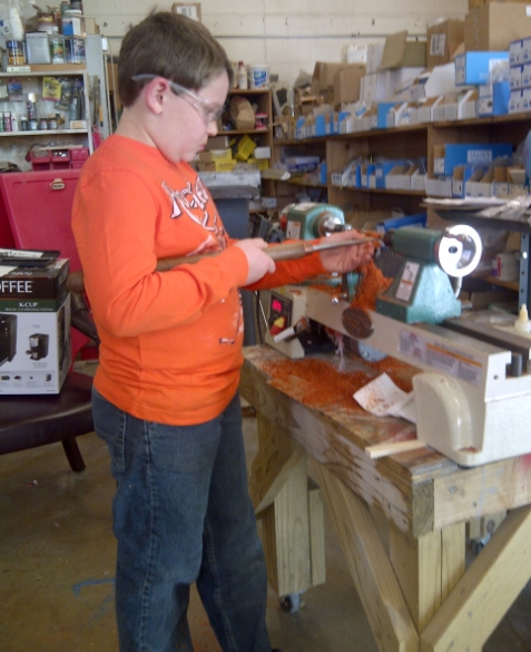 My 10 year old nephew & I spent about 4 hours in the shop Thursday. We watched a DVD about pen making, cut-up some sandpaper, prepared some blanks and turned his 1st pen! I don't know who was more proud...me or him! I didn't realize I had that much patience stored up! lol