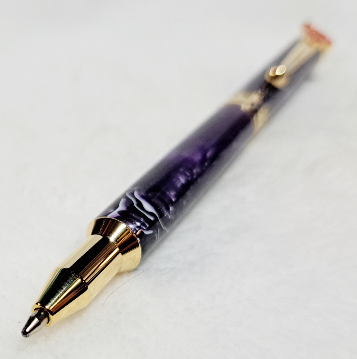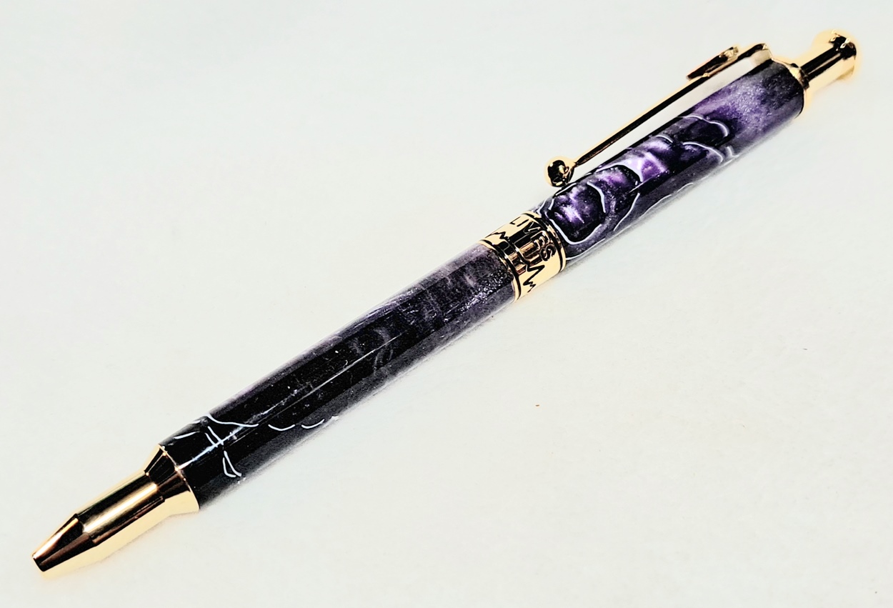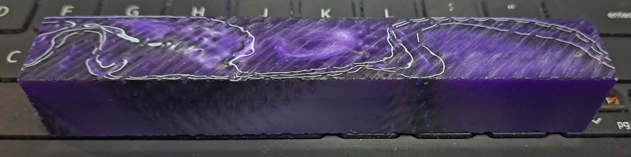 Purple was a no brainer, it's her favorite color. The blank surprised me, though. I've turned a lot of acrylic acetate over the years, but this is one of the more spectacular ones.