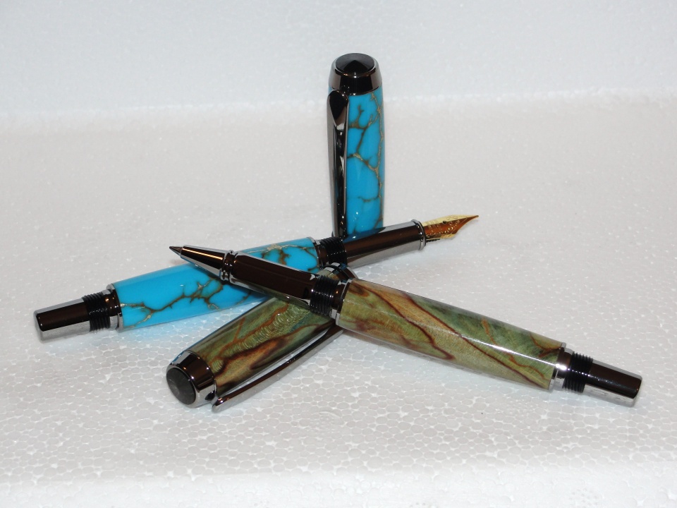 .....not the 1933 Three Stooges movie, I mean these. First try at doing a Rollerball and FP. Rollerball is stabilized maple burl from Pacific NW Blanks, the other is Tru-Stone I had for months but never knew what to use it on. Looks like it found a home. Being a rookie the assembly was tricky at first but got the hang of it after watching a vid from Exotic Blanks on YT. Had to pay attention to lining up the grain patterns. C&C welcome.....enjoy.