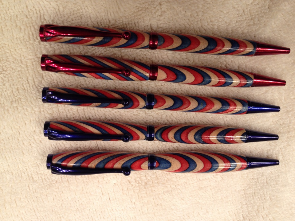 This was an order from a friend. I made one and she liked it so much she wanted 5 more. The wood is from Rockler and the kits are from Woodturnginz. I finished them using the 3 step process by Mylands, also from Woodturninz...I'm still a begineer.