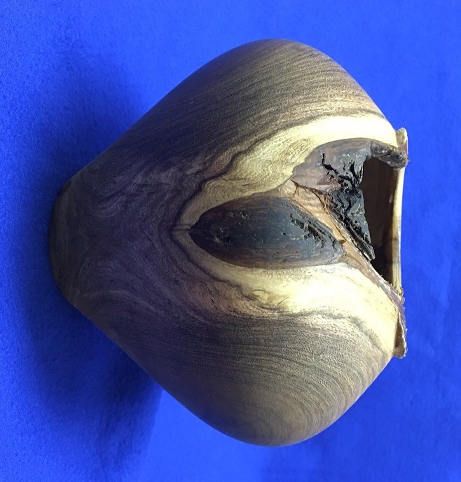 An hollow form using a mesquite crotch, reminds me of a grouse pushing his breast out. Height 5.5", widest 5.5" and the base is just under 2" C&C welcome William