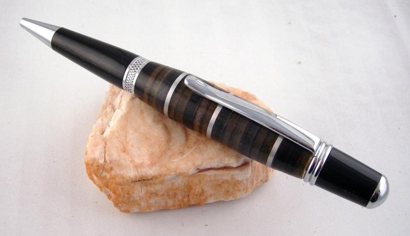 Offering a suggestion: I combined two very different materials together to make this pen a few months ago. The aluminum came from a Lowes metal selection rack, and was from a 1" x 36" strap piece. This aluminum is a pretty soft temper and was fairly easy to cut along with the stabilized leather squares. I have also found that copper pipe compressed flat in a vise will also turn well. The one metal I have tried that was very difficult for me was brass, but I think it was too thick (3/32") and too tempered. The leather used came from an old belt.