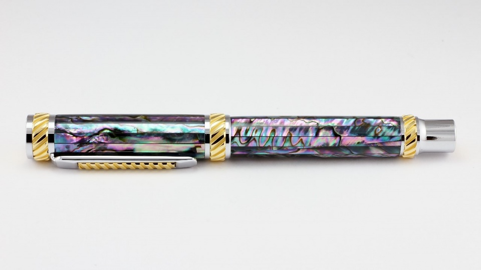 Here is one I was able to make over Spring Break last week. This is a Jr Abraham from Exotic Blanks. The material is Mexican Green Heart Abalone. Thanks for looking.