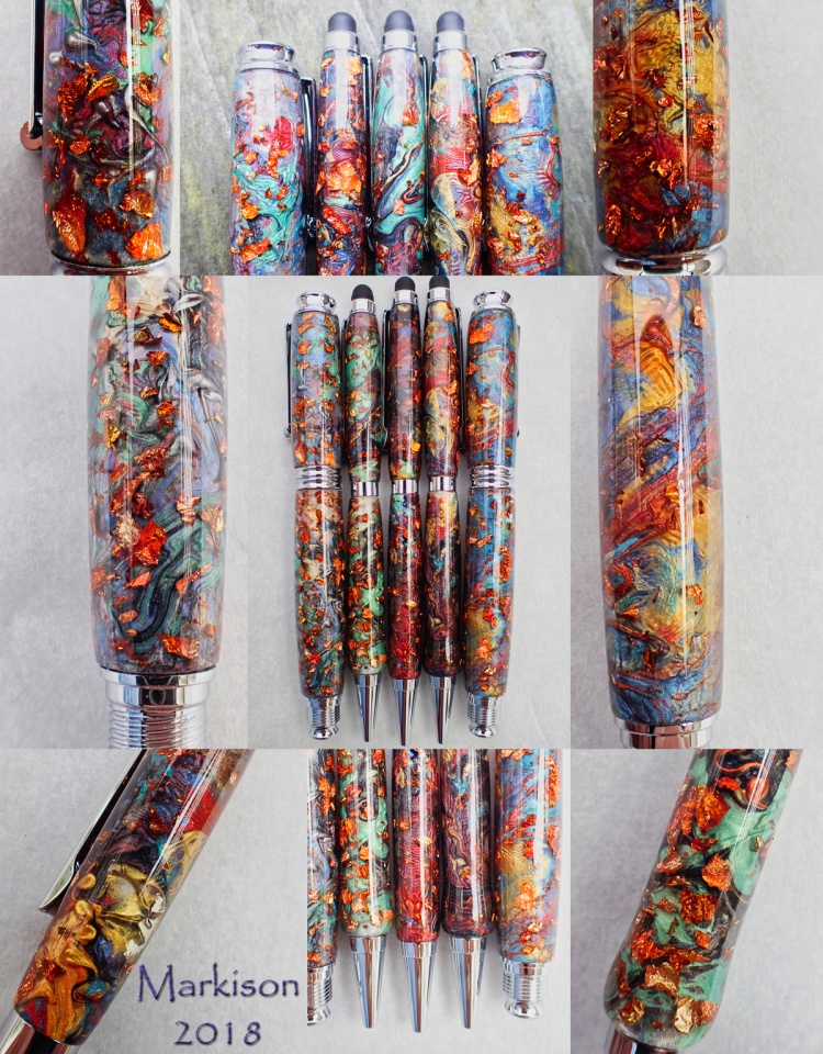 Some artist friends (who also make their own paints from raw pigments ground into various "vehicles") requested some colorful dimensional "paintscape" pens to brighten up the Holidays.