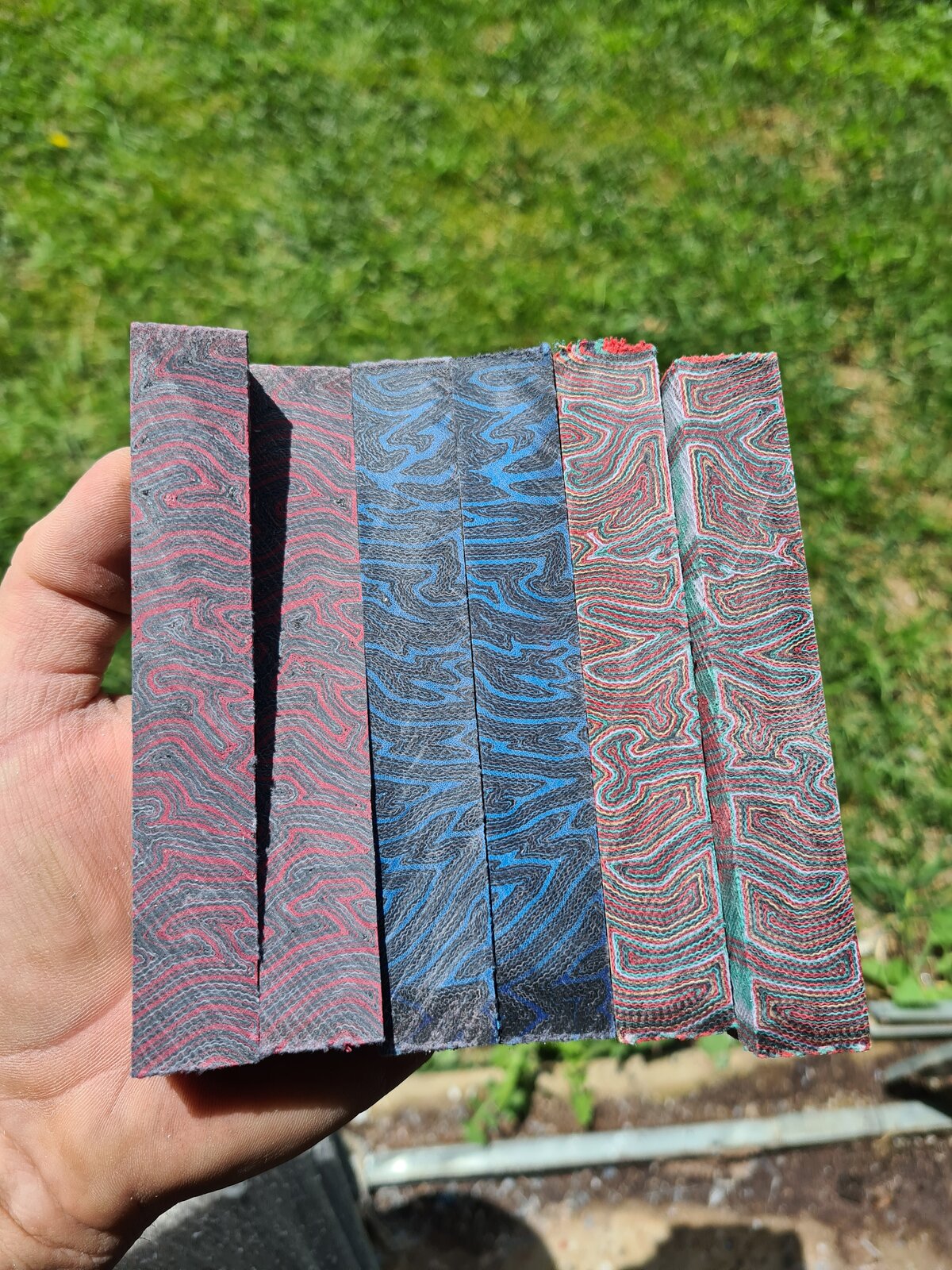 Bought a few micarta blanks from Ken Frisbie from the USA recently, and boy oh boy do they look striking! Such an odd turning experience, it was like making coloured powder!