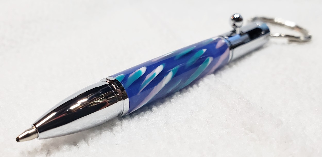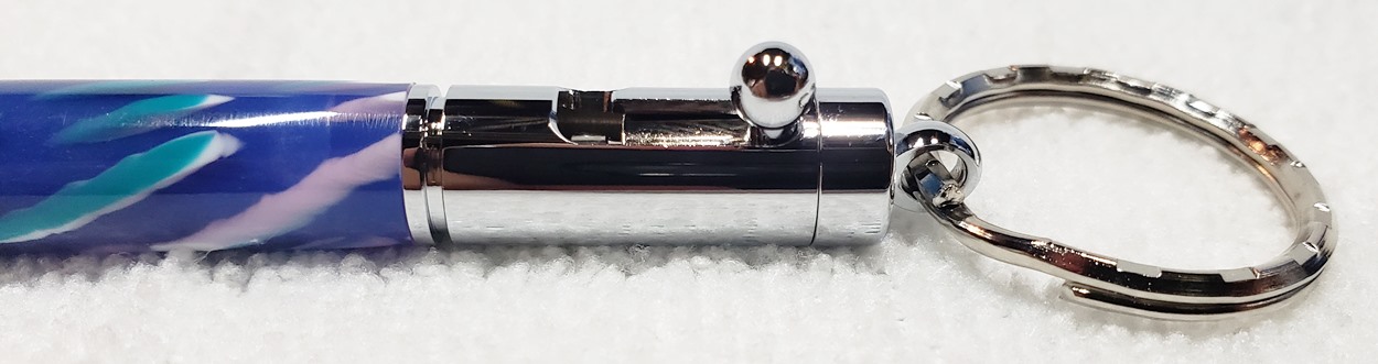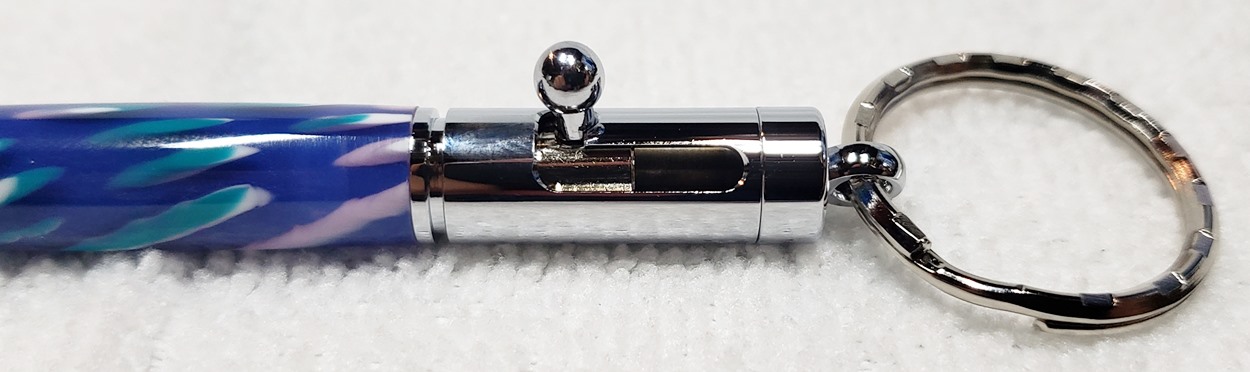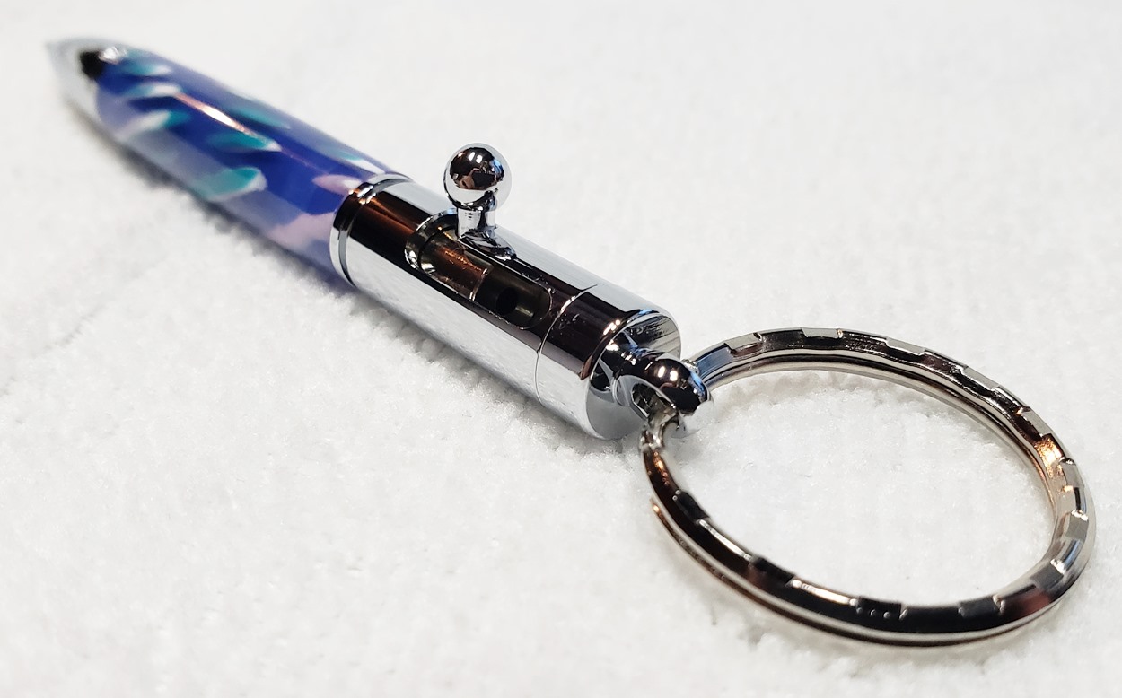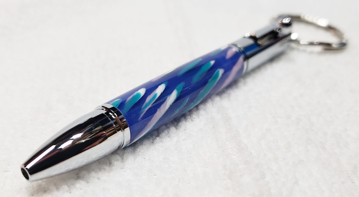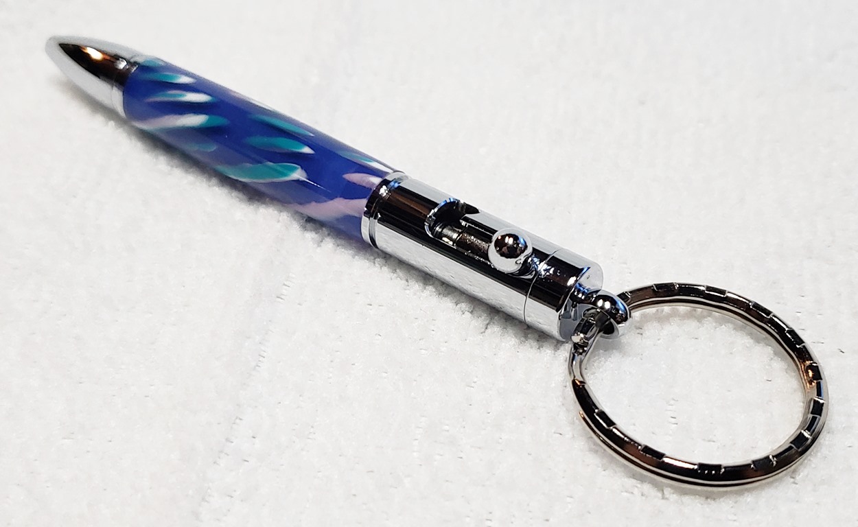 This is a new one for me. It's a Mini Bolt Action pen/keyring, in chrome, from PSI. The blank is a poly resin from Woodcraft called Urchin. Cute little thing.