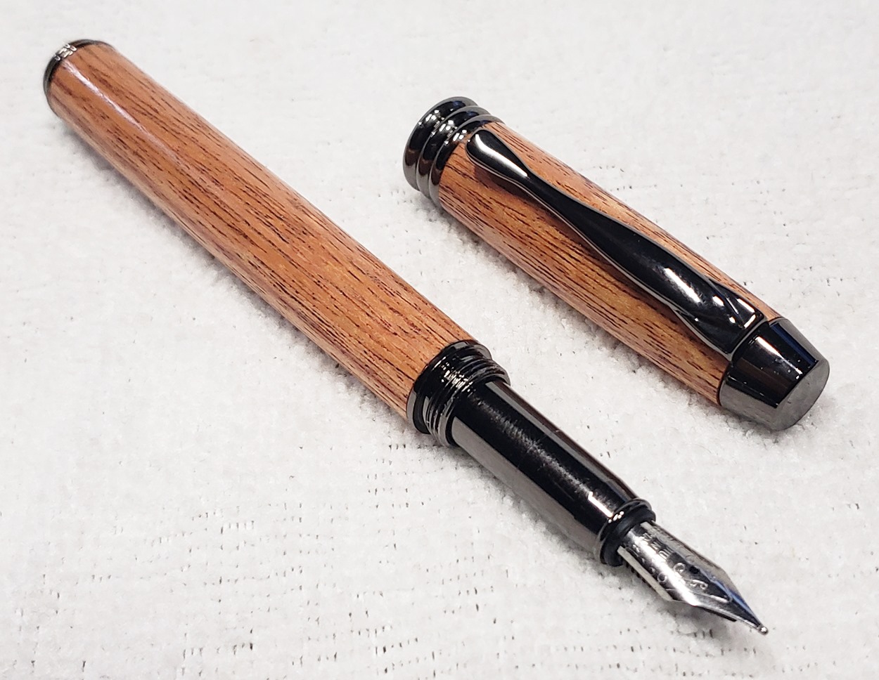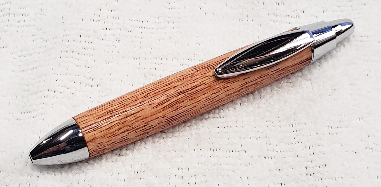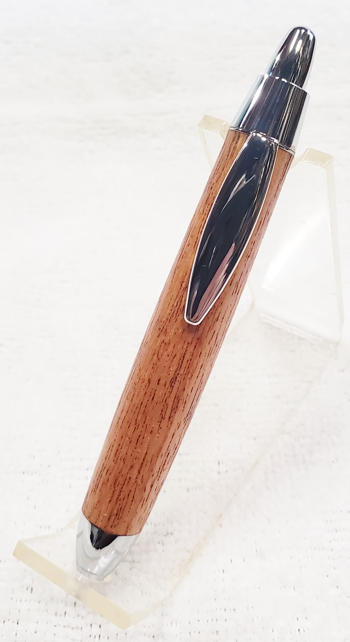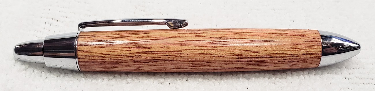 This is a PSI Mini Click pen in chrome, the only finish available. The wood is macacauba from Woodcraft. Cute little thing. The finish is Pens Plus.