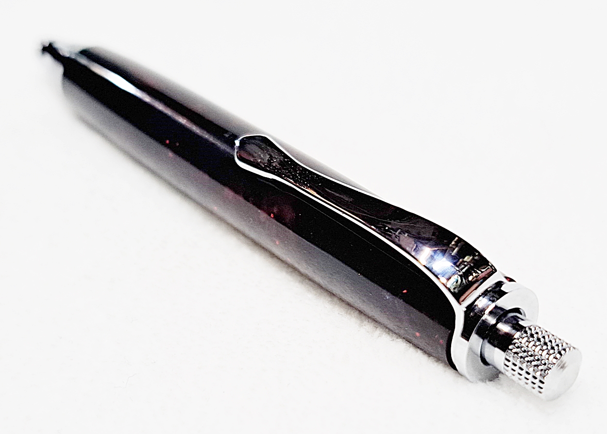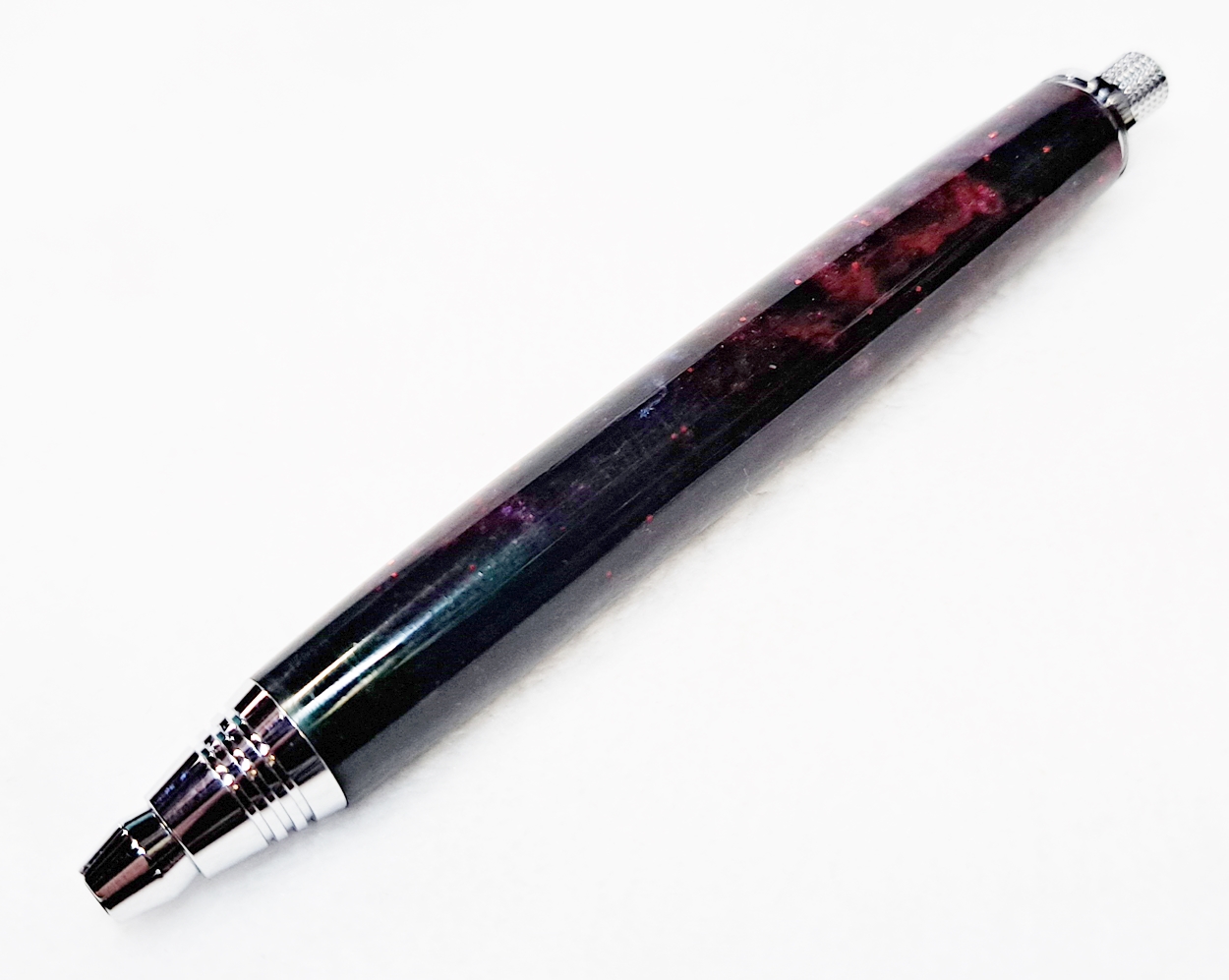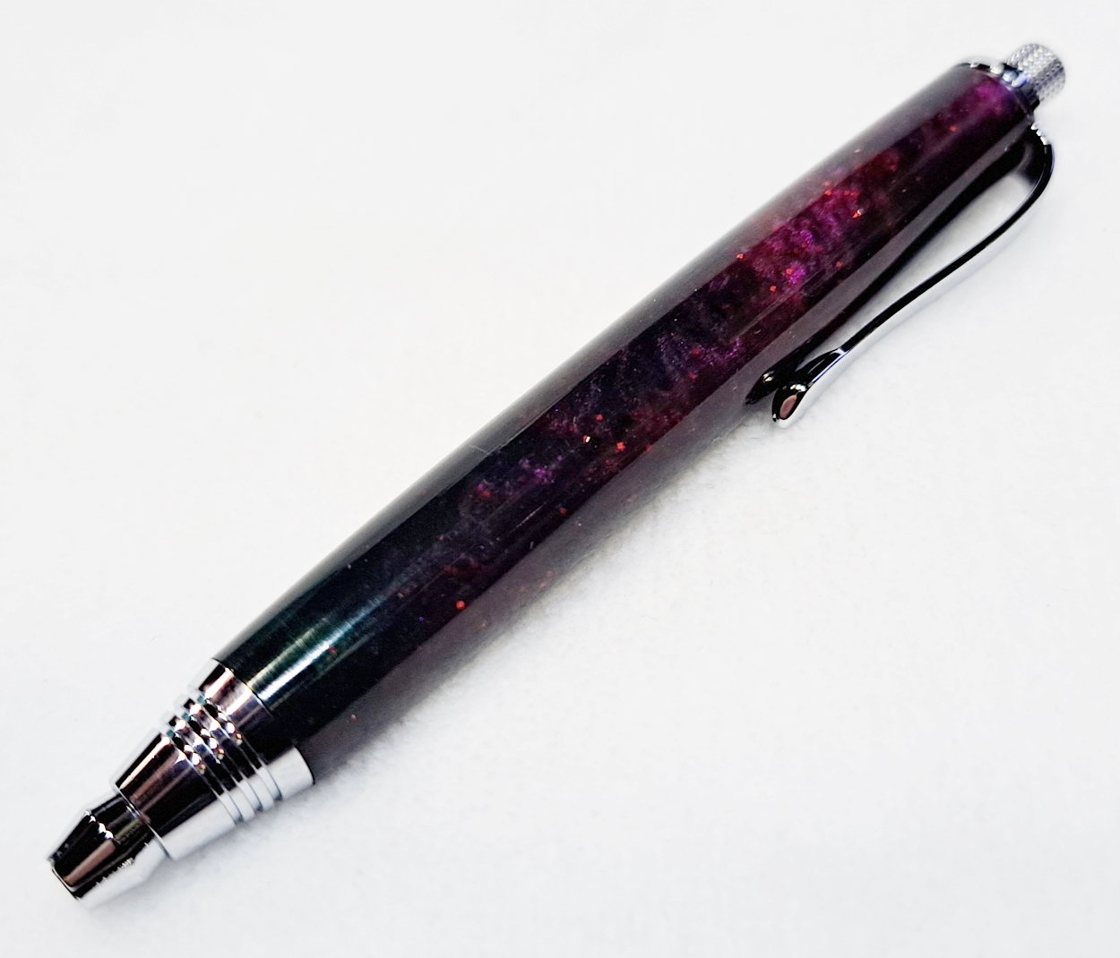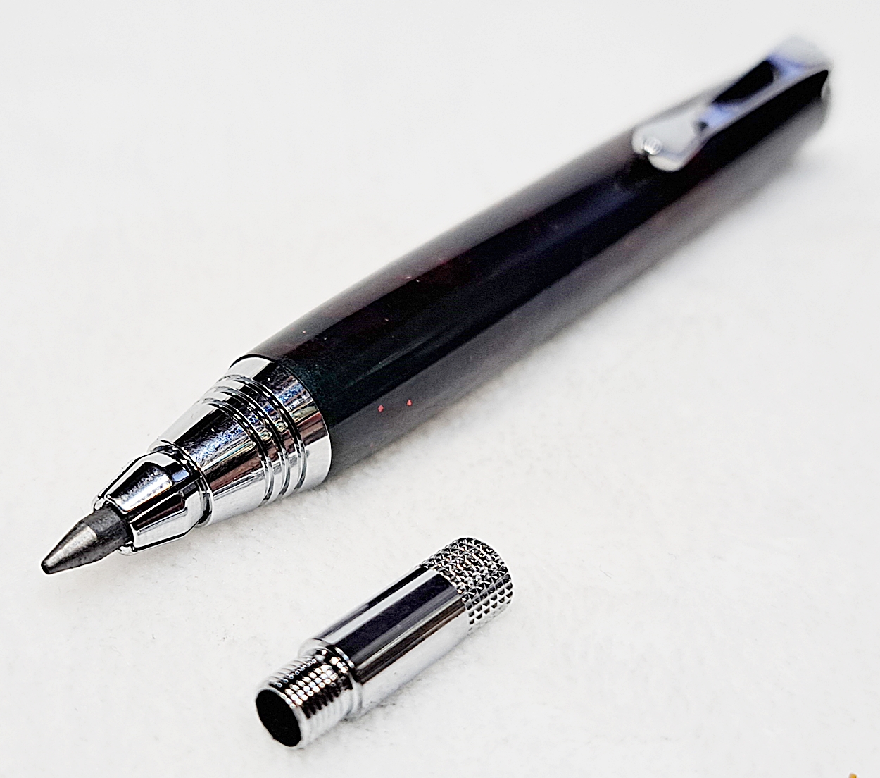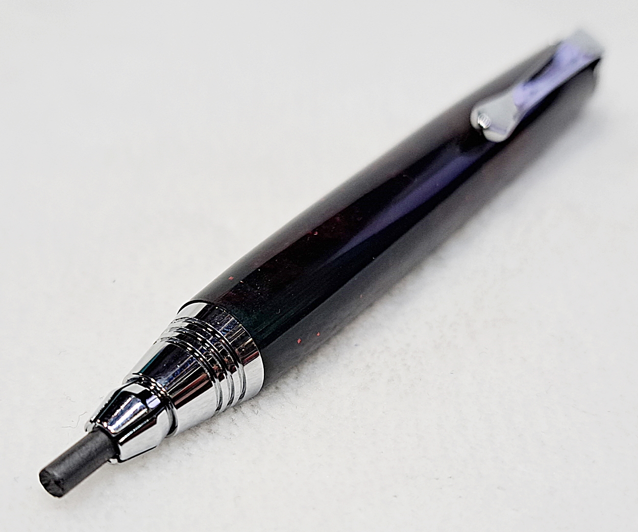 This is a PSI Mini Sketch Pencil in chrome. The blank is a custom cast by my friend Dennis. The photos don't do it justice. There is a lot of depth in it that shows up in sunlight and bright light, that I couldn't capture with the camera. This is my first time turning one of these. I like the kit. It takes 3mm lead, and has a built-in sharpener.
