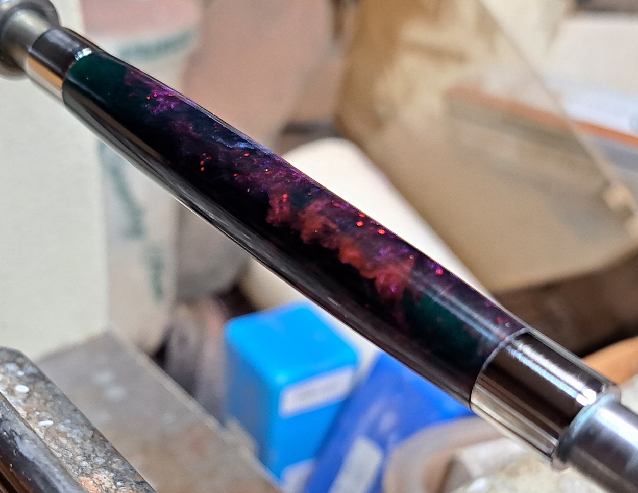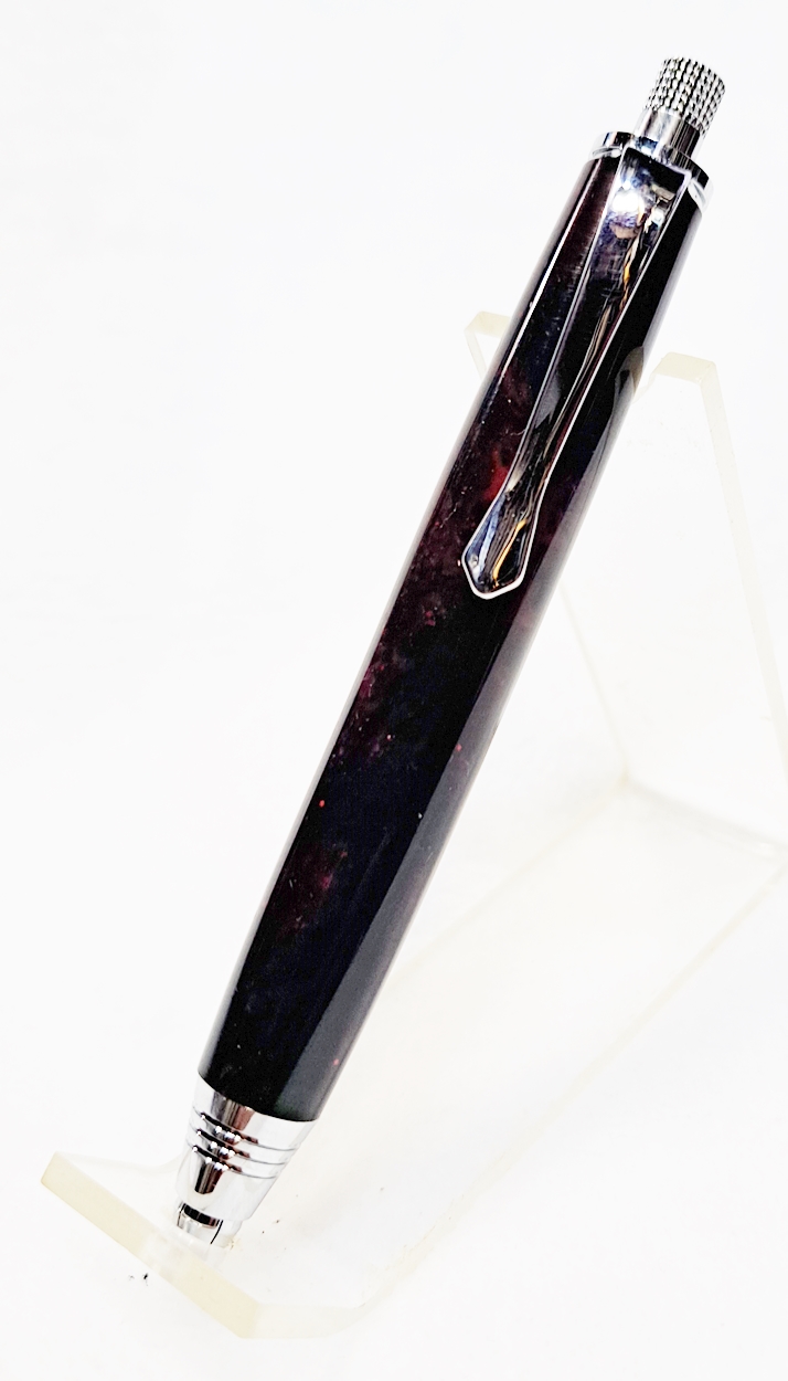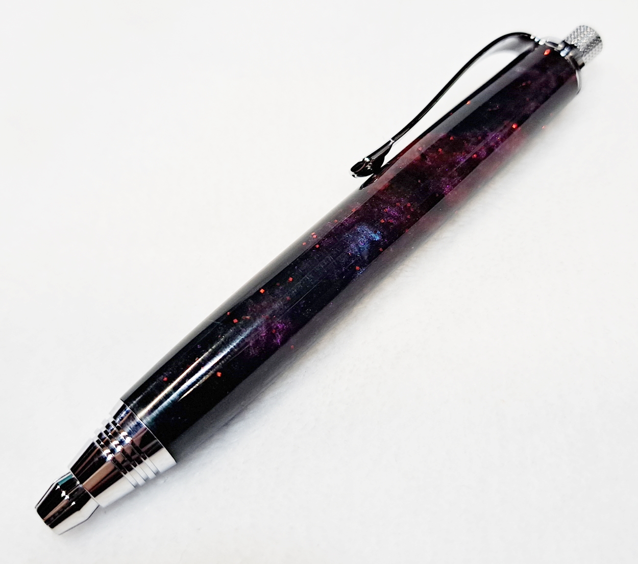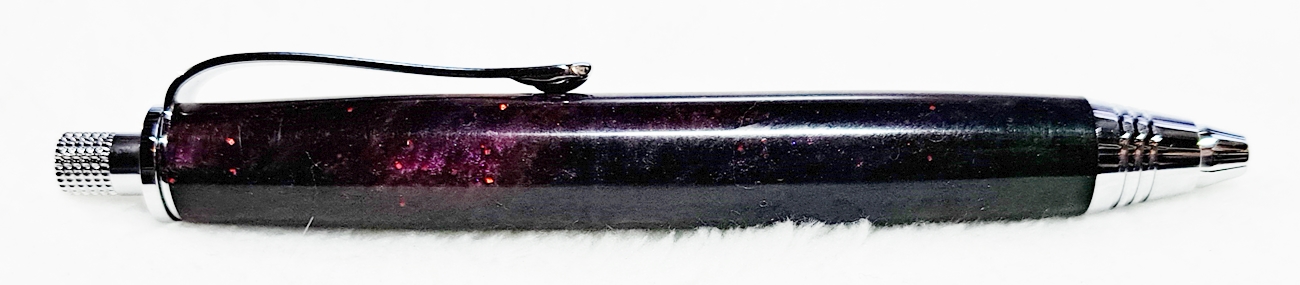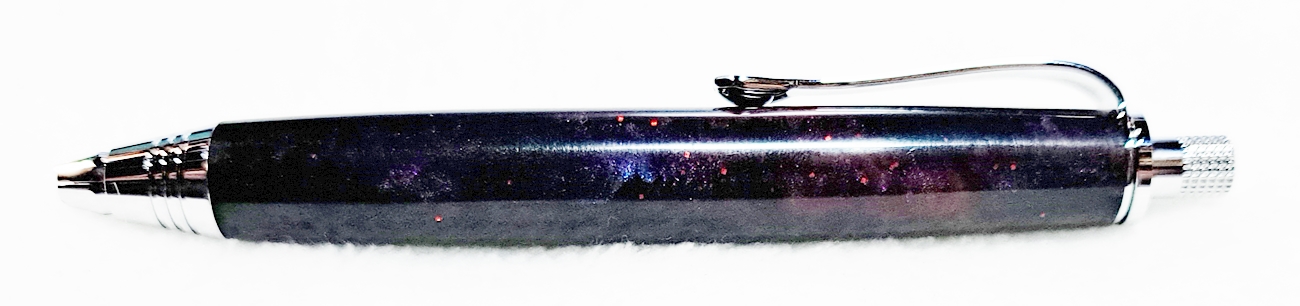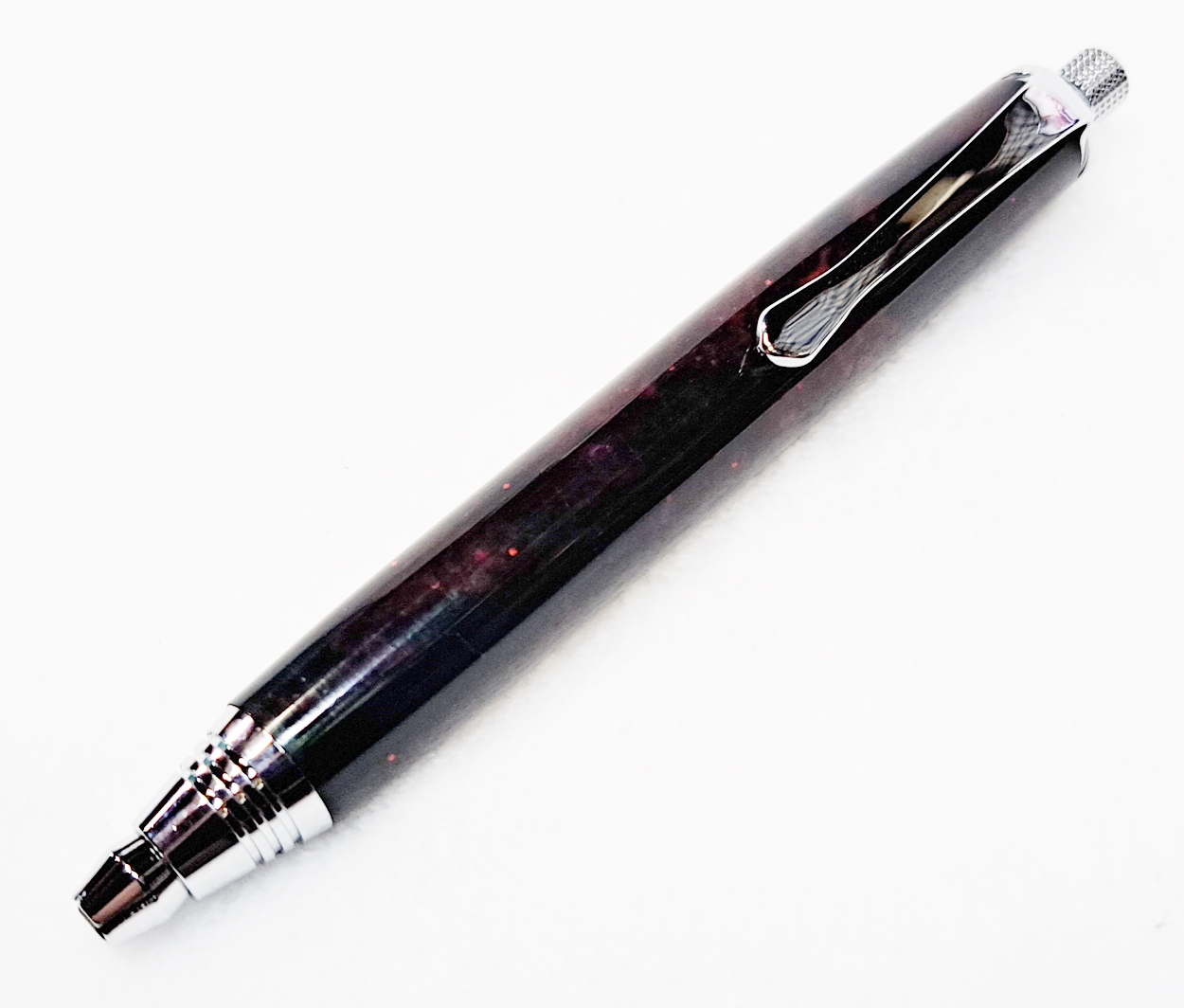 This is a PSI Mini Sketch Pencil in chrome. The blank is a custom cast by my friend Dennis. The photos don't do it justice. There is a lot of depth in it that shows up in sunlight and bright light, that I couldn't capture with the camera. This is my first time turning one of these. I like the kit. It takes 3mm lead, and has a built-in sharpener.