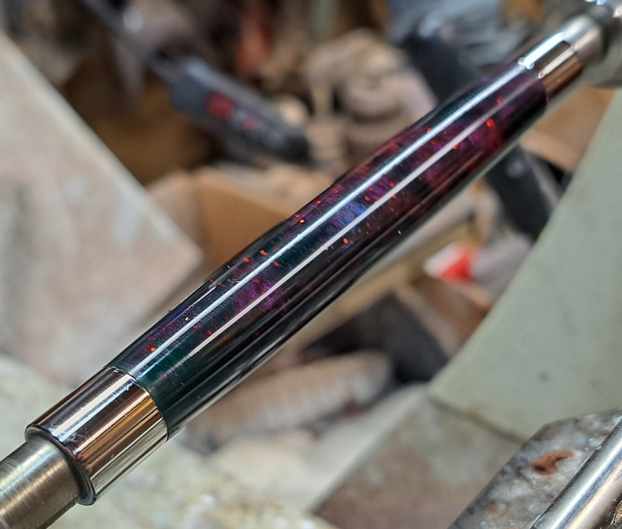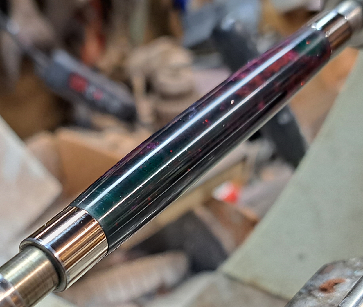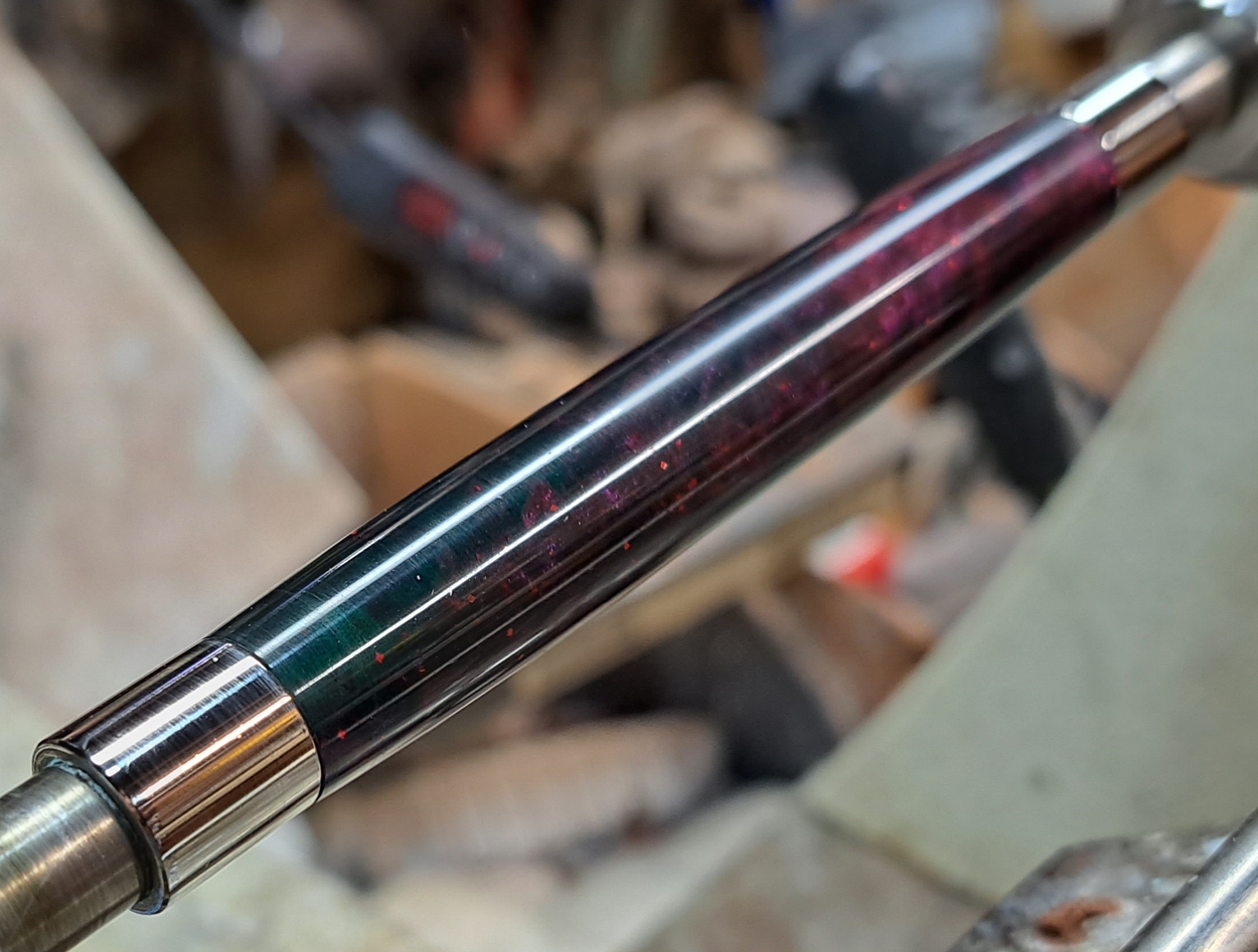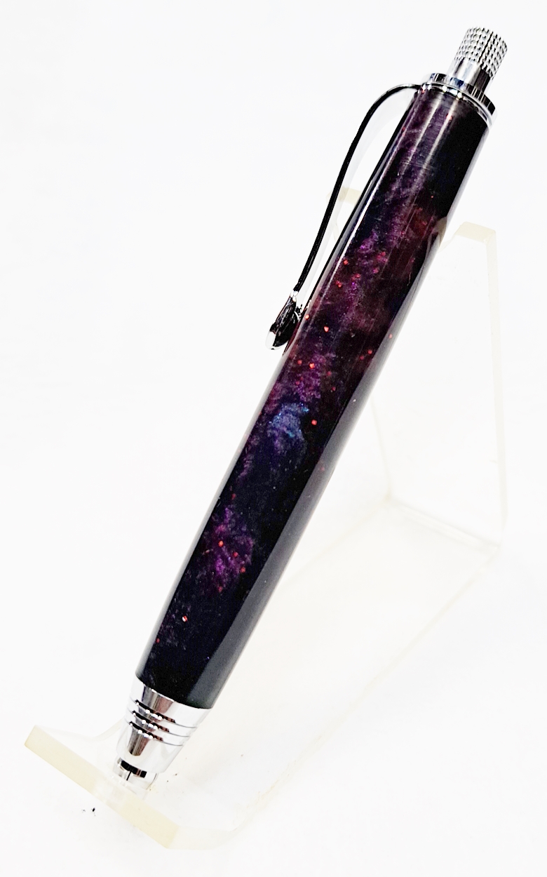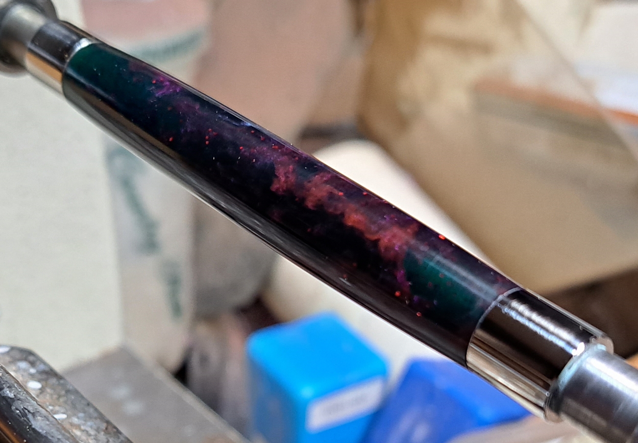 This is a PSI Mini Sketch Pencil in chrome. The blank is a custom cast by my friend Dennis. The photos don't do it justice. There is a lot of depth in it that shows up in sunlight and bright light, that I couldn't capture with the camera. This is my first time turning one of these. I like the kit. It takes 3mm lead, and has a built-in sharpener.