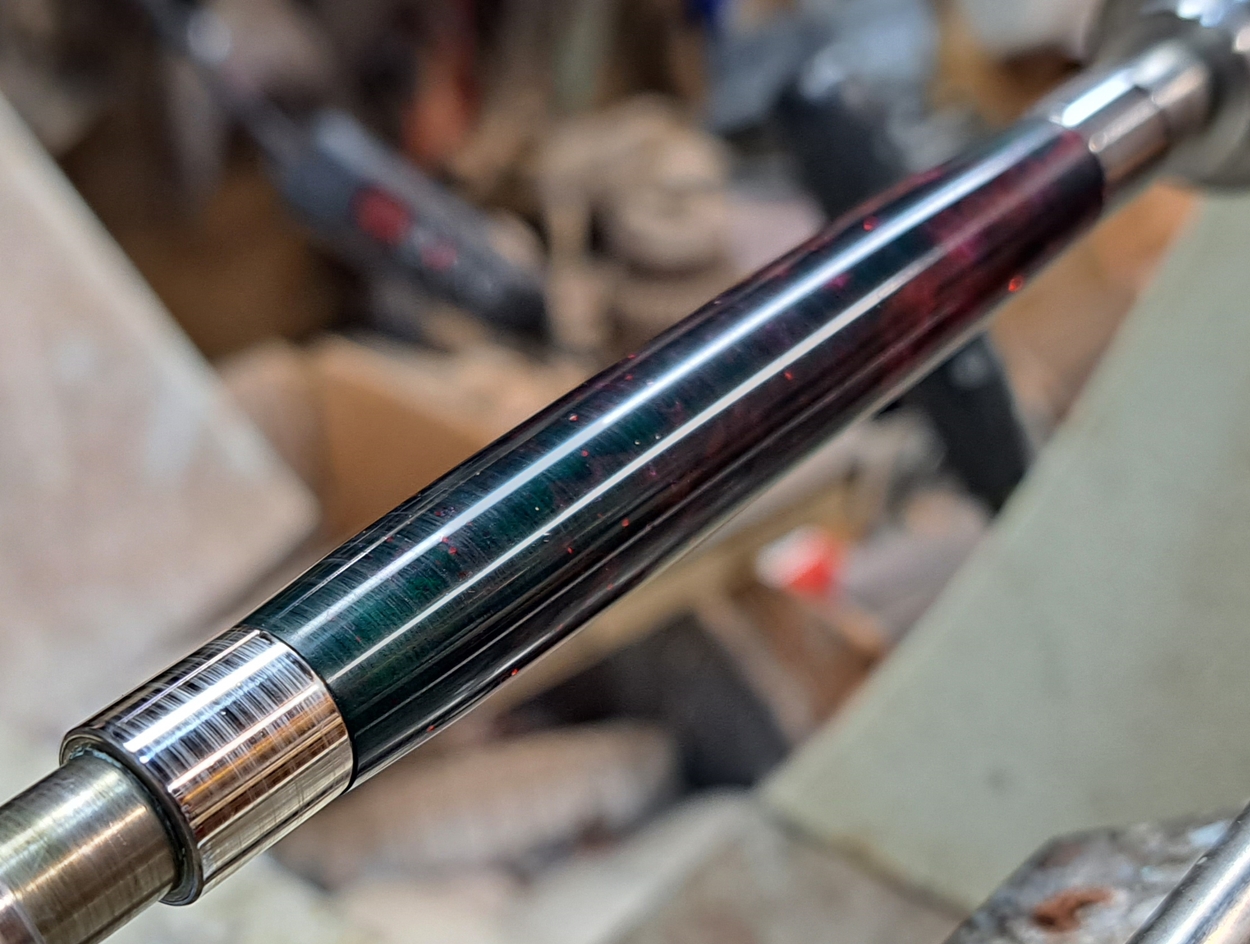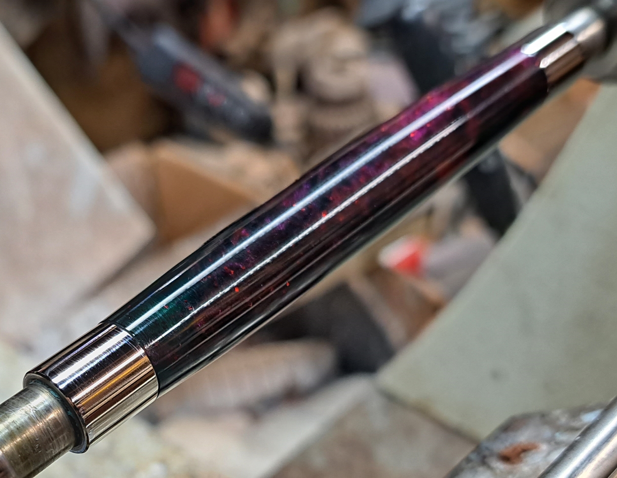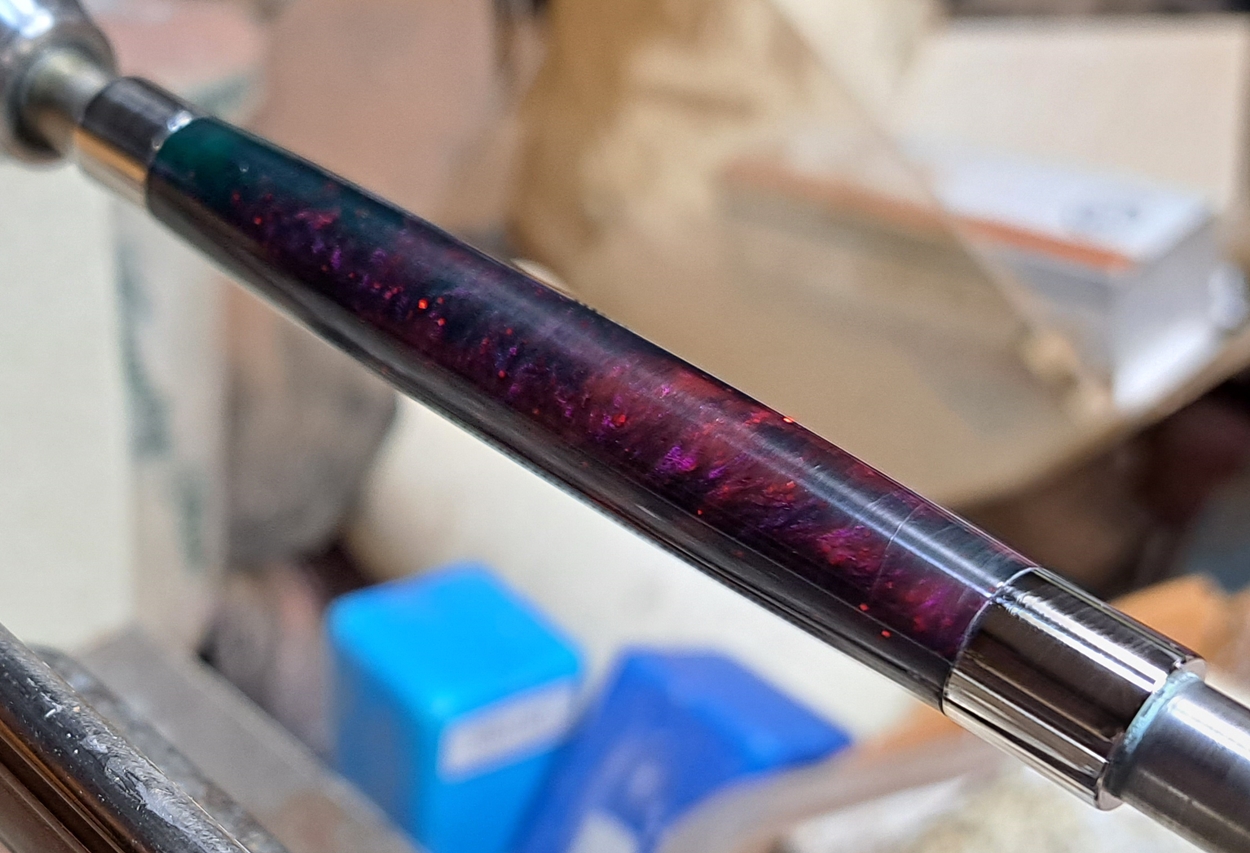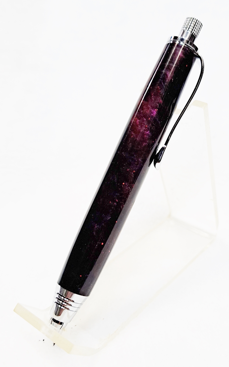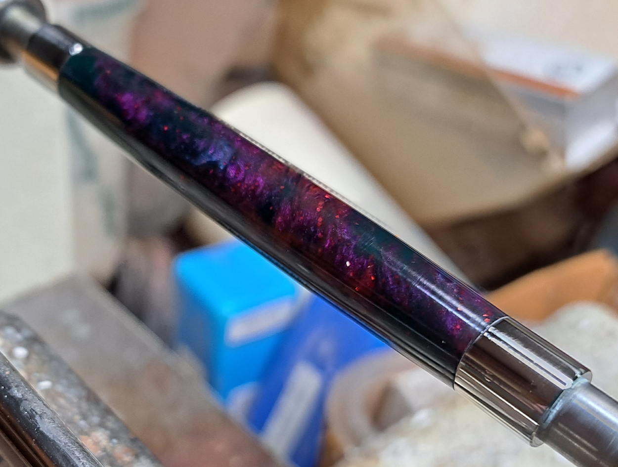 This is a PSI Mini Sketch Pencil in chrome. The blank is a custom cast by my friend Dennis. The photos don't do it justice. There is a lot of depth in it that shows up in sunlight and bright light, that I couldn't capture with the camera. This is my first time turning one of these. I like the kit. It takes 3mm lead, and has a built-in sharpener.