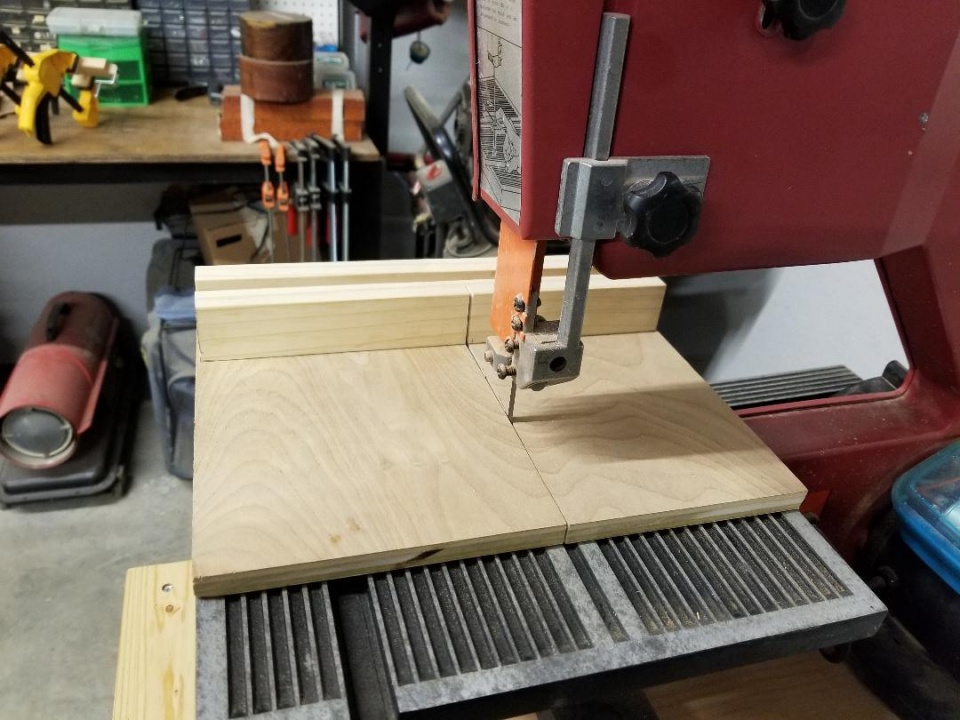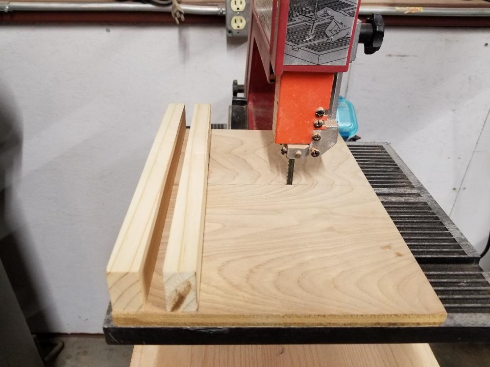 The dual slots is rare and find those on the larger bandsaws. But it would help. But again the front fence for stability is gone because you cut through it. On a tablesaw no need to cut that high. I am not saying a bandsaw can not be used because it sure can but the quality of cut is much better on a tablesaw with a blade that is solid. Now everyone will say you use less material with a bandsaw because of the tin kerf which is true if you do not have to tweak the cut due to wavering cuts because of the actions of the blades. I use that more or less for cutoffs straight cuts. If I am angling I am using the tablesaw.