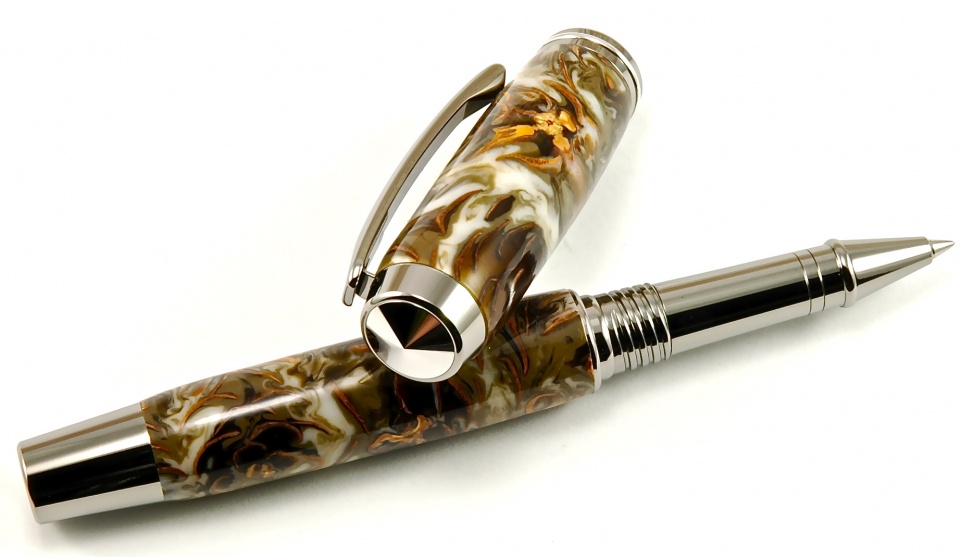 I couldn't sleep the other night. Too much riff raff going through my brain, so I headed to my studio to clear my brain and relax. This is what came of it. I can't decide if it looks more like coffee and creamer or hot chocolate and marshmallows? It's a mini-pine cone Alumilite cast, dressed in a Jr. Gentlemen II kit. Finished with 15 coats of CA, wet sanded with MM 1500 through 12,000.