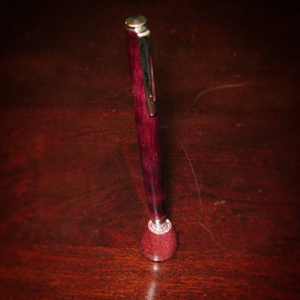 This is a one piece slimline that I made for a coworker. Purpleheart with a streamline kit, CA finish.