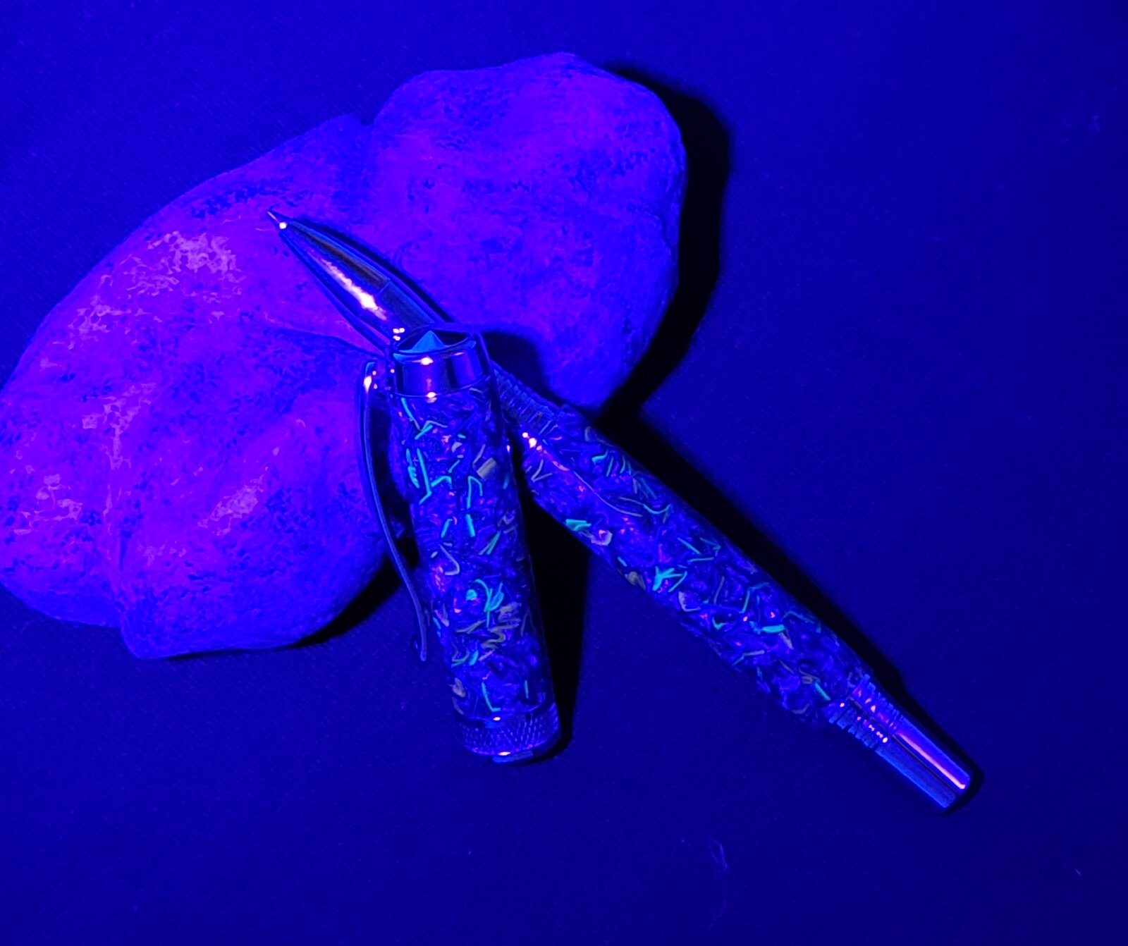 Since I had the UV light out for that last pen I photographed and was curious, I tested it out on this one. See the results for yourself. It won't be a selling point, but it's kinda cool.