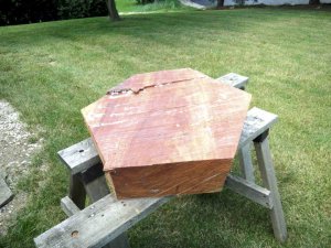 I just scored a gi-normous piece of cherry wood. This slab is about 8" thick and about 32" across. It is a lengthwise slab from a much larger piece of log.