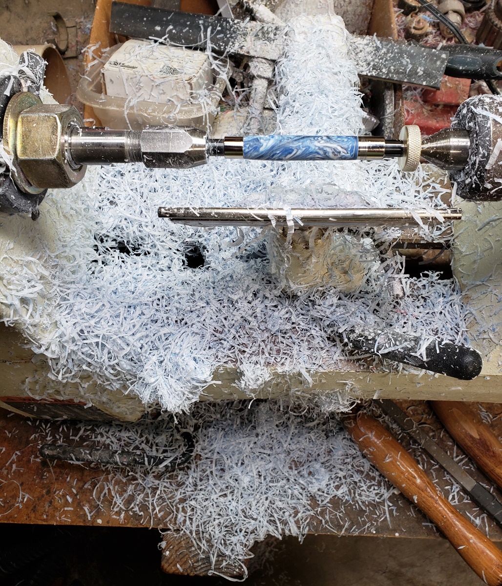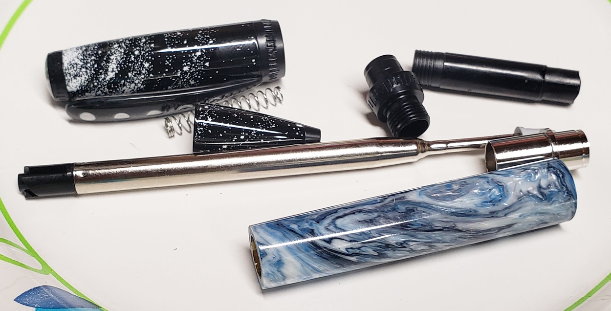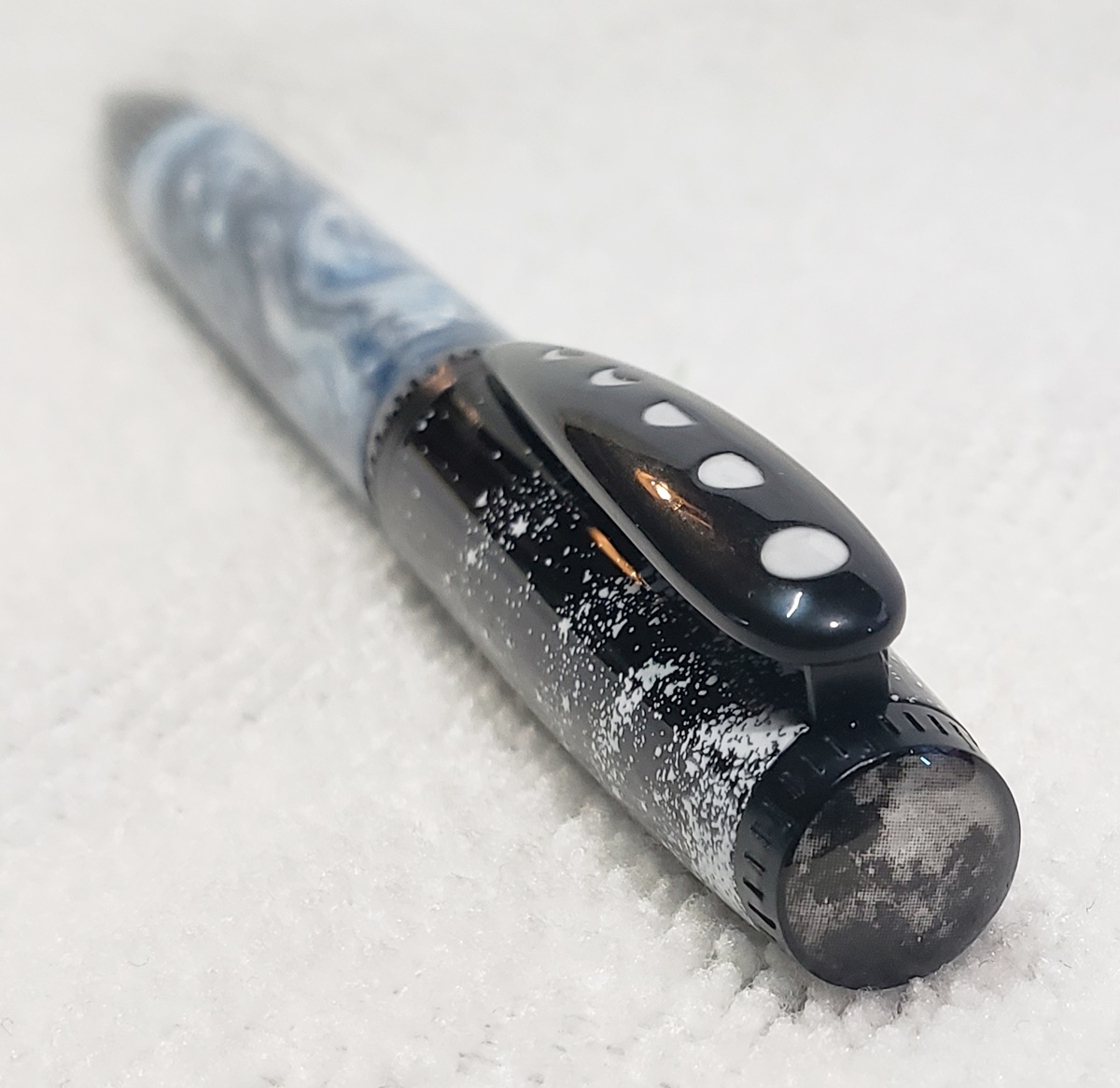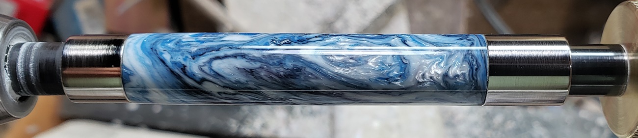 This is a PSI Moon pen that I bought from Exotic Blanks. The blank is a Vapor Swirl called Moon Sugar, also from EB. I love the pen and blank! Lots of great details in the pen, and the blank is stunning!