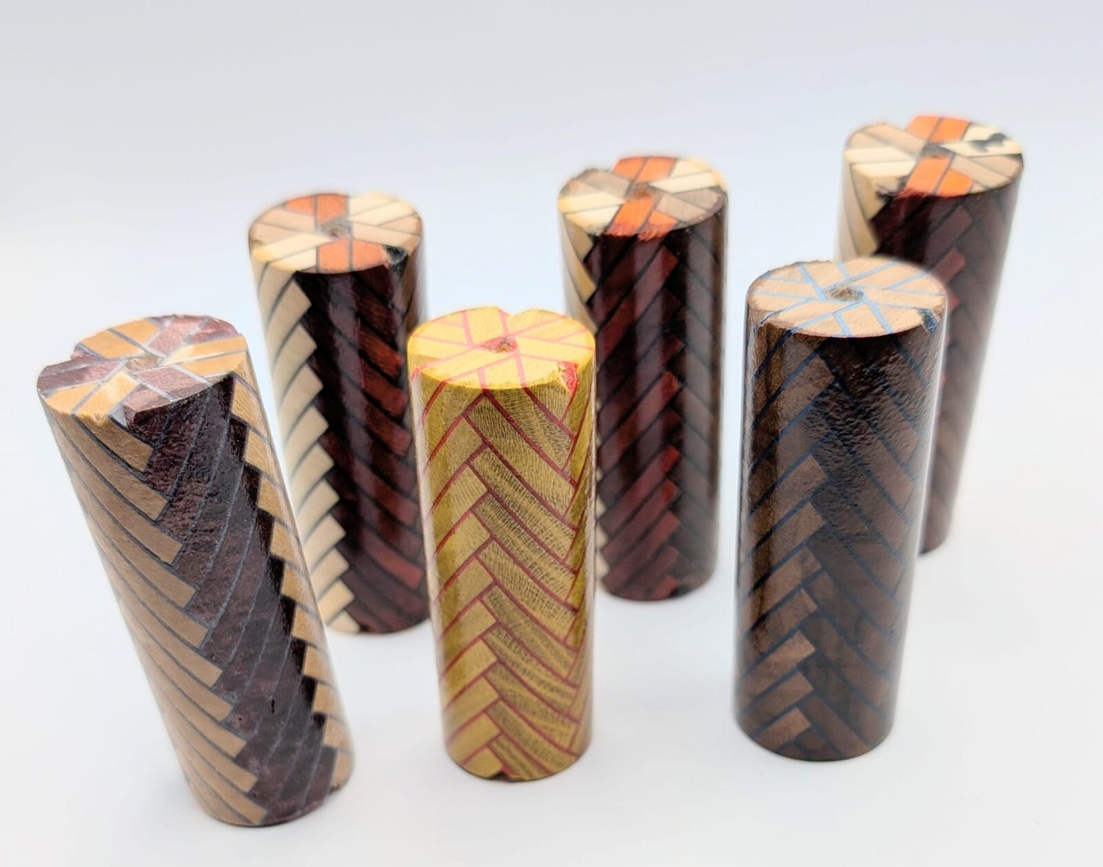 Ok now you have to share any jigs you made to make these. :) My guy won't share his jig yet. You are way ahead of me on this so I will be picking your brain. He said and everyone who has made these have said consistency and exactness is key. Like many segmented blanks this is true. You know this for sure too. This is one of my big projects this year as well as my trinket boxes that i want to build. If I can make these 2 items it will be a great off season. Winter is my best shop time days. What I did was download both Don's paper but also Darrin's paper and between both of them I can see how things go together. The adding of veneers is just taking it a step up. If I could only get the triangle method would take it to even another level because there was a pen I want so bad to try. I could not get answers back then because lips were even tighter than they are today.