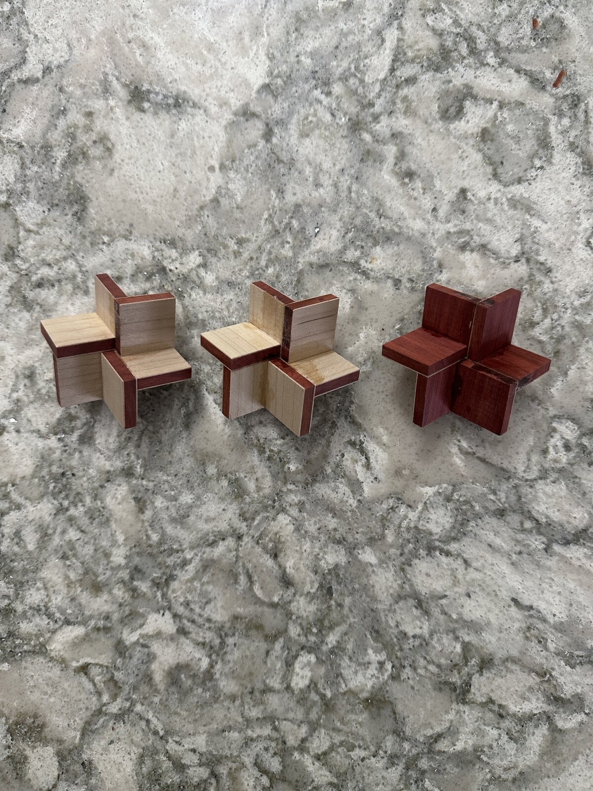 This is funny Ken because this is what I am going to be attempting myself thus the veneers as I started to gather. I have been communicating with a person on FB who has shown me a few things because this guy'S work is far above anyone I have seen who has done these. What you need to do is put veneer (instead of calling it separation) on an end grain and not 2 flat sides. Now I have not done any yet because he basically told me to start with Don Wards tutorial to make a few basic ones to get the lay of the way things need to line up which is what I will do.