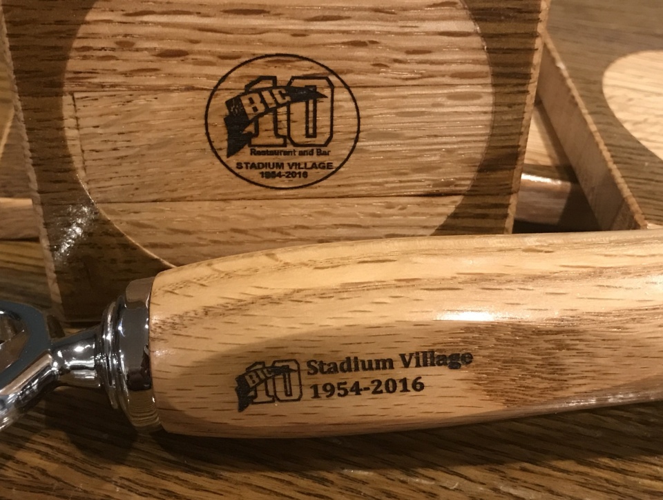The coasters were simple since they were flat but the round openers were a little tricky. While it may be simple on a smaller diameter like a pen but the larger diameter of the opener caused the logo to look skewed. To make things easy, I just sanded a flat spot on each handle to accept the laser etching. I'd say they turned out pretty nice!:smile: