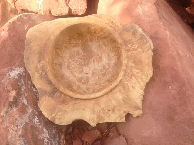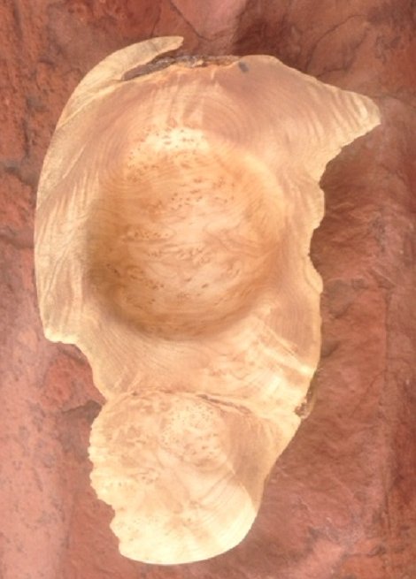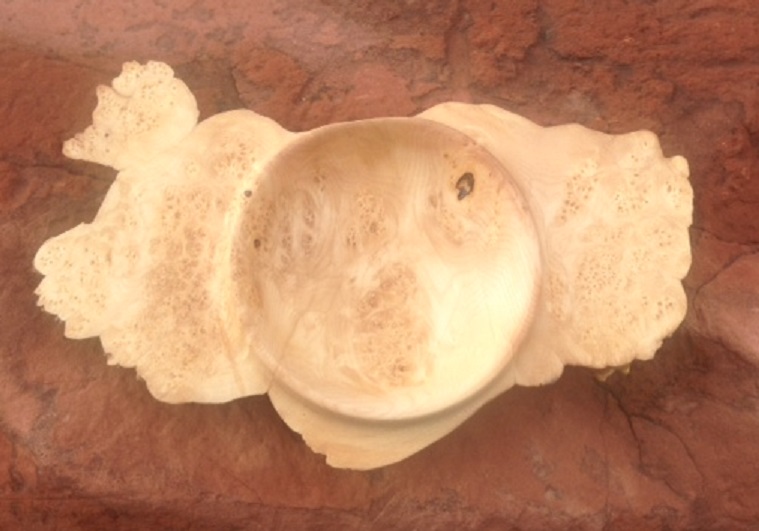 Three more maple lace burl winged bowls. I really enjoy this wood. It is like opening a Christmas present you never know what the grain is like inside. The finish is orange oil and bees wax this leaves th wood with a smooth satin feel.
