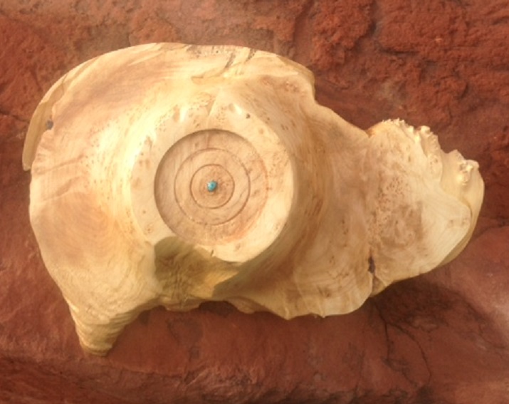 I added little chips of turquoise to two of the bowls after watching a Jimmy Clewes video. He said people will pick up a bowl and turn it over I watched and they do that. The little chips are like a "treasure they discover".